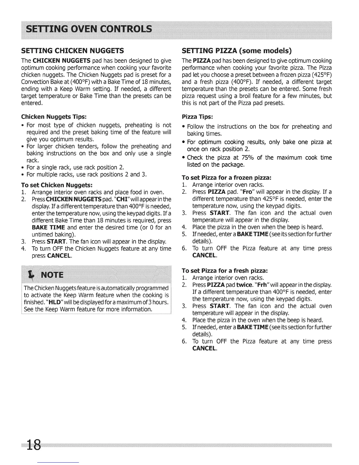 SETTING PIZZA (some models)