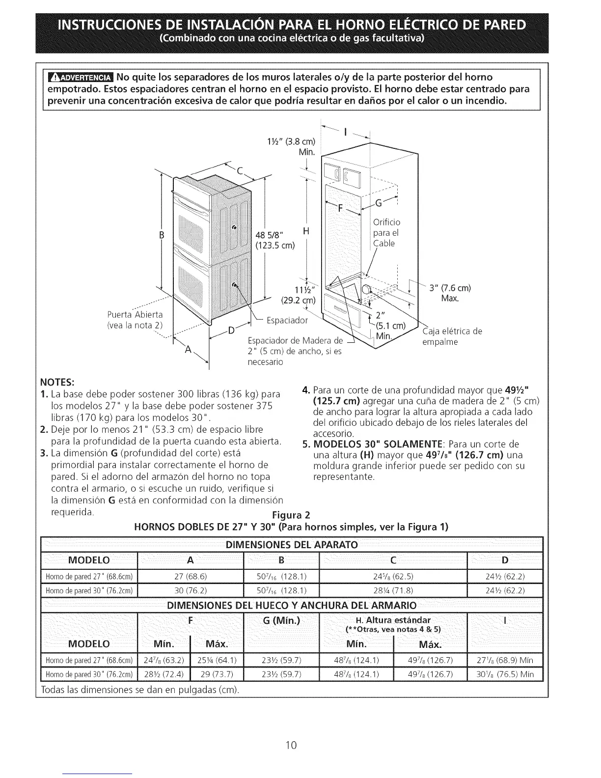 HORNOS DOBLES DE 27" Y 30" (Para hornos simples, vet la Figura I)