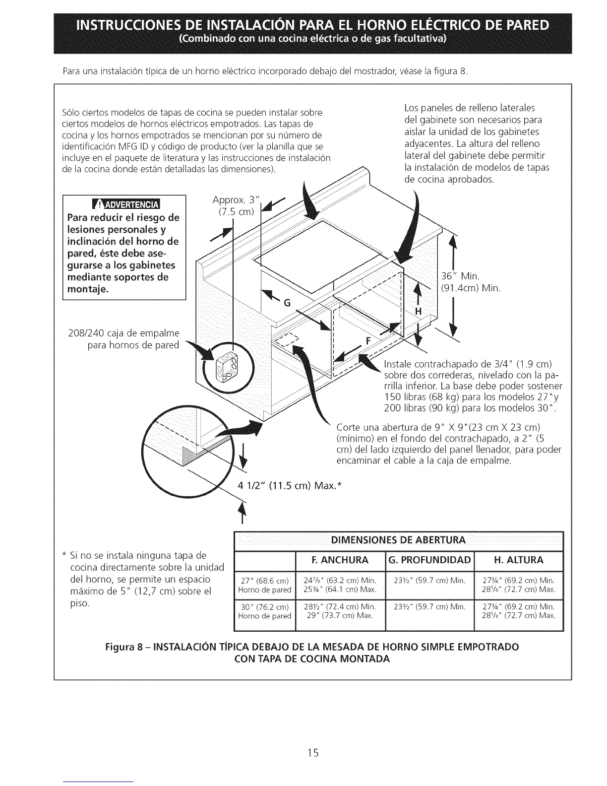 Para una instalacion tfpica de un horno electrico incorporado debajo del mostrador, vease la figura 8.