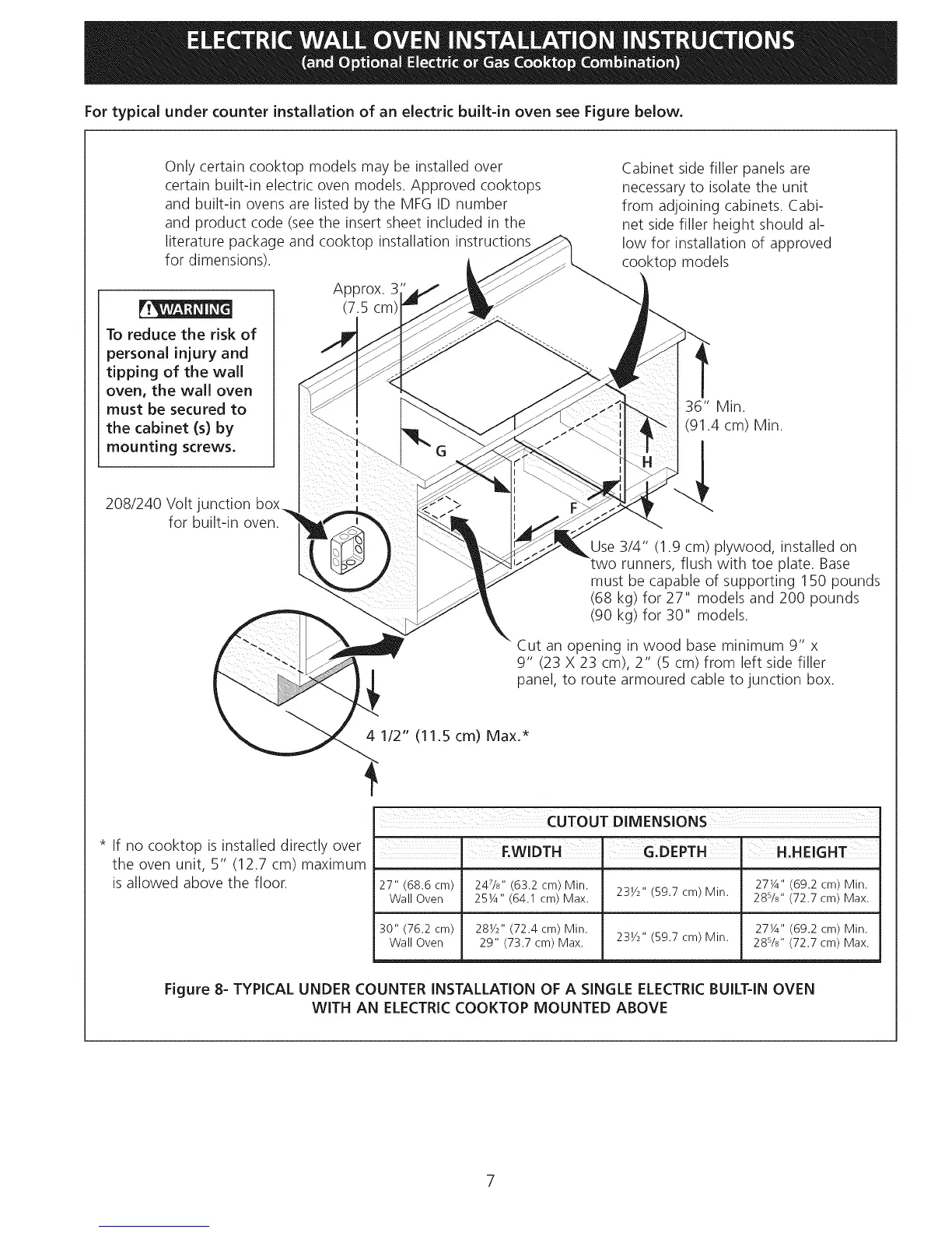 Figure 8- TYPICAL UNDER COUNTER INSTALLATION OF A SINGLE ELECTRIC BUILT-IN OVEN