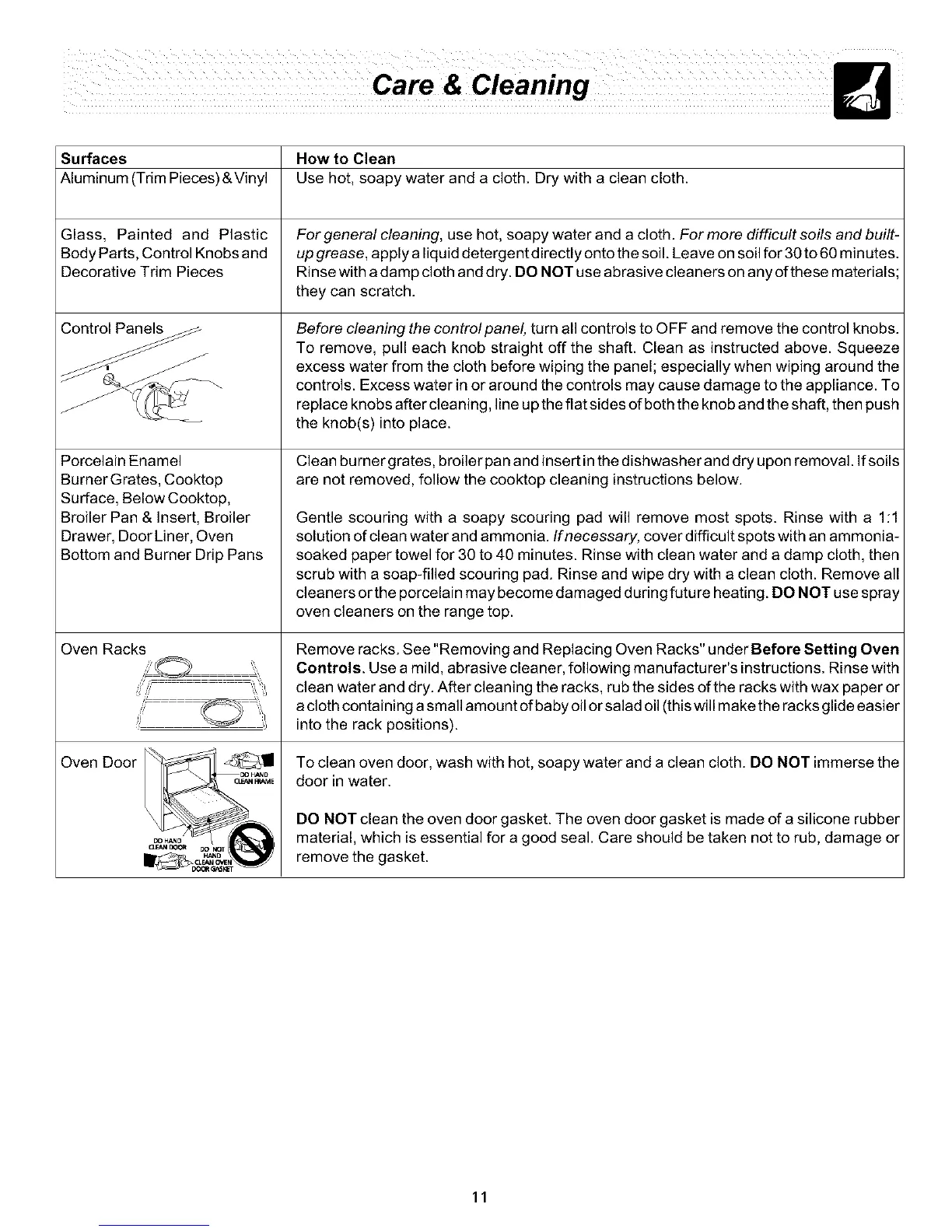 cleaners orthe porcelain may become damaged during future heating. DO NOT use spray