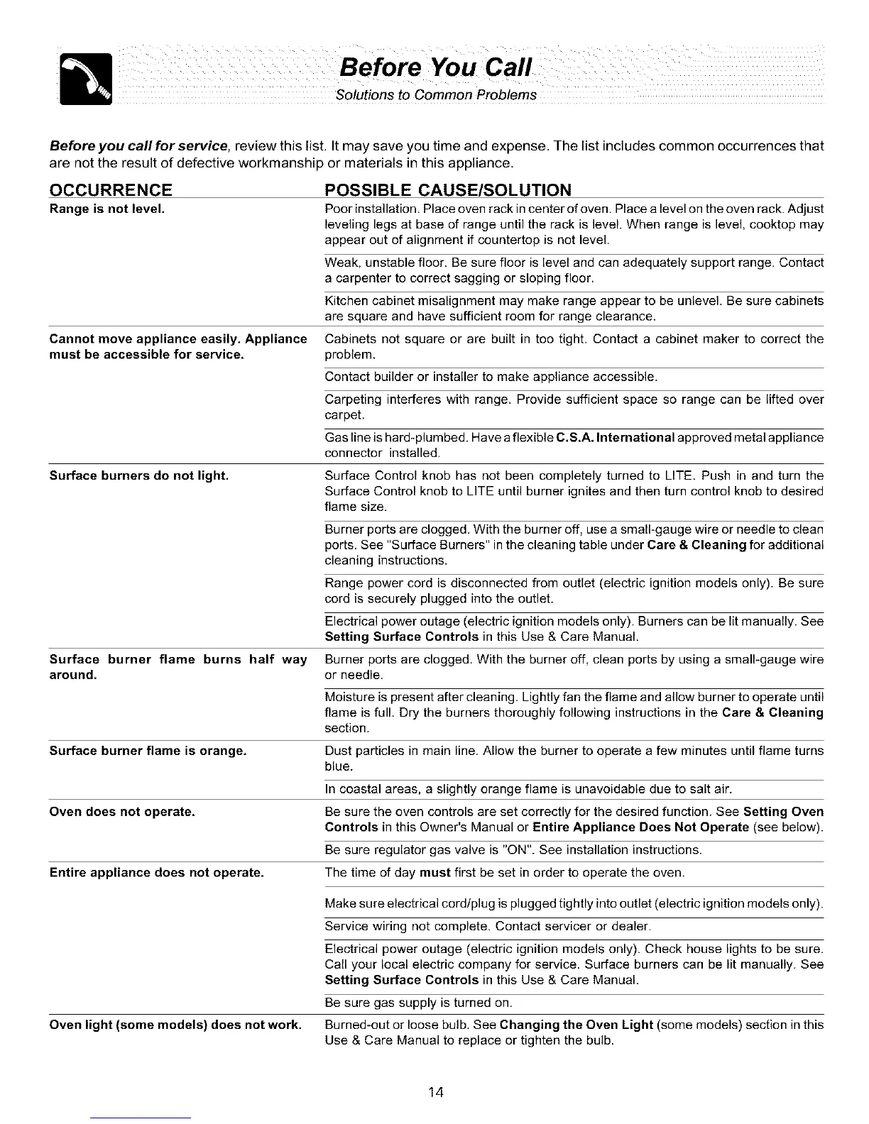 Before you call for service, review this list. It may save you time and expense. The list includes common occurrences that