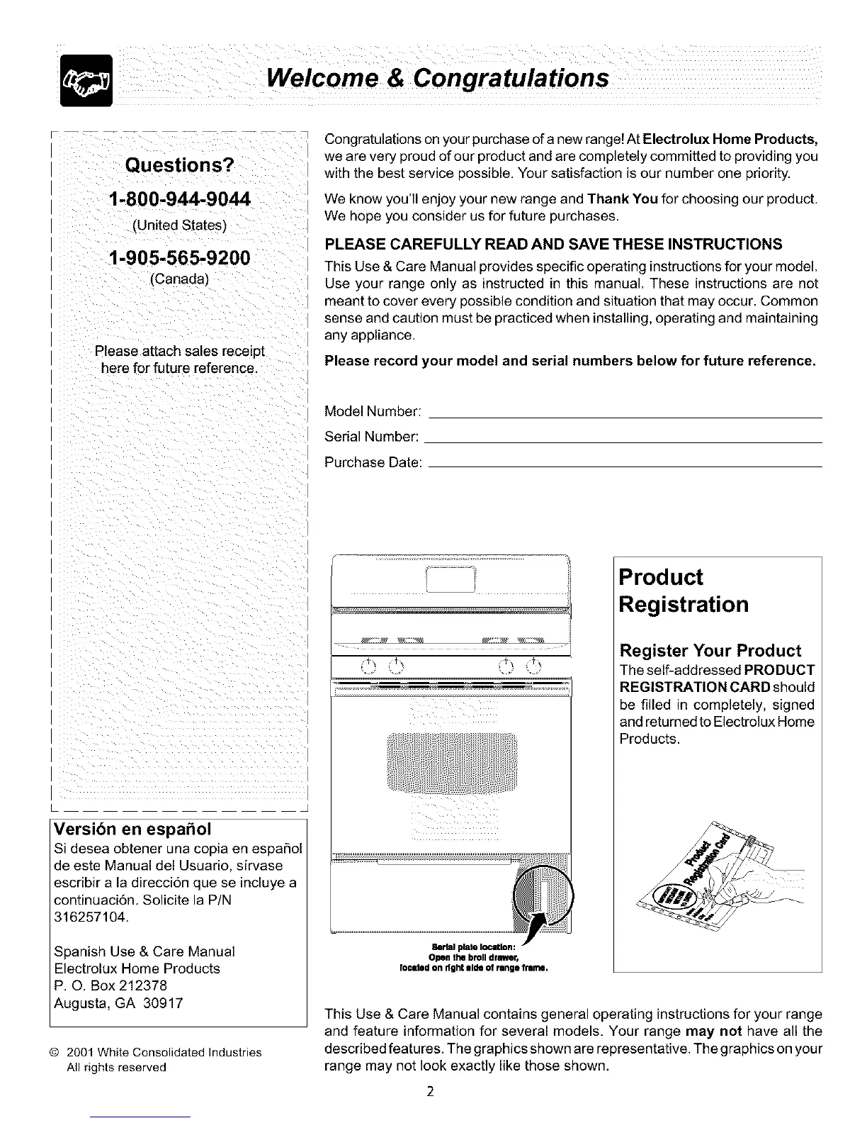Congratulations on your purchase of a new range! At Electrolux Home Products,