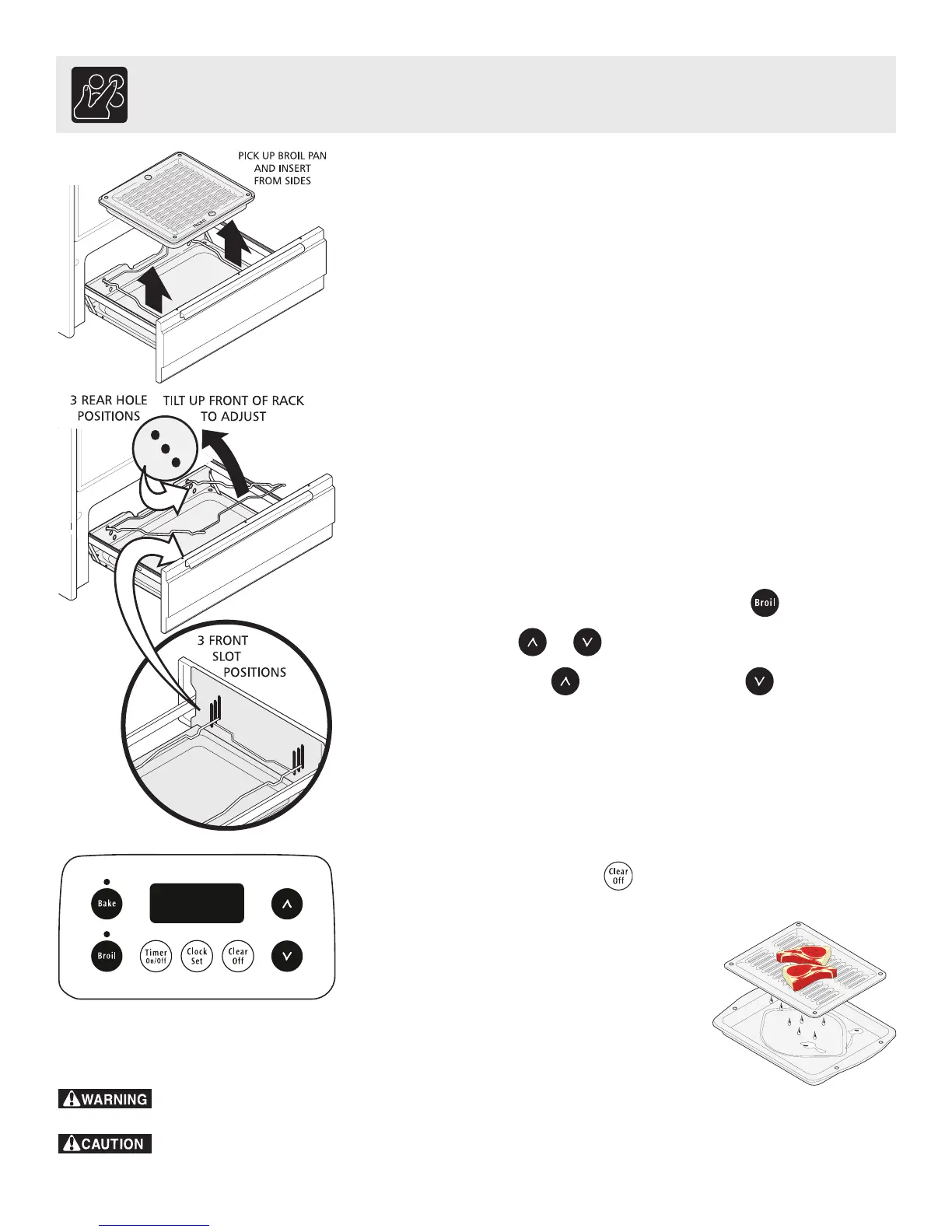 in rear of broiler drawer. Reposition back of rack in the desired locating holes