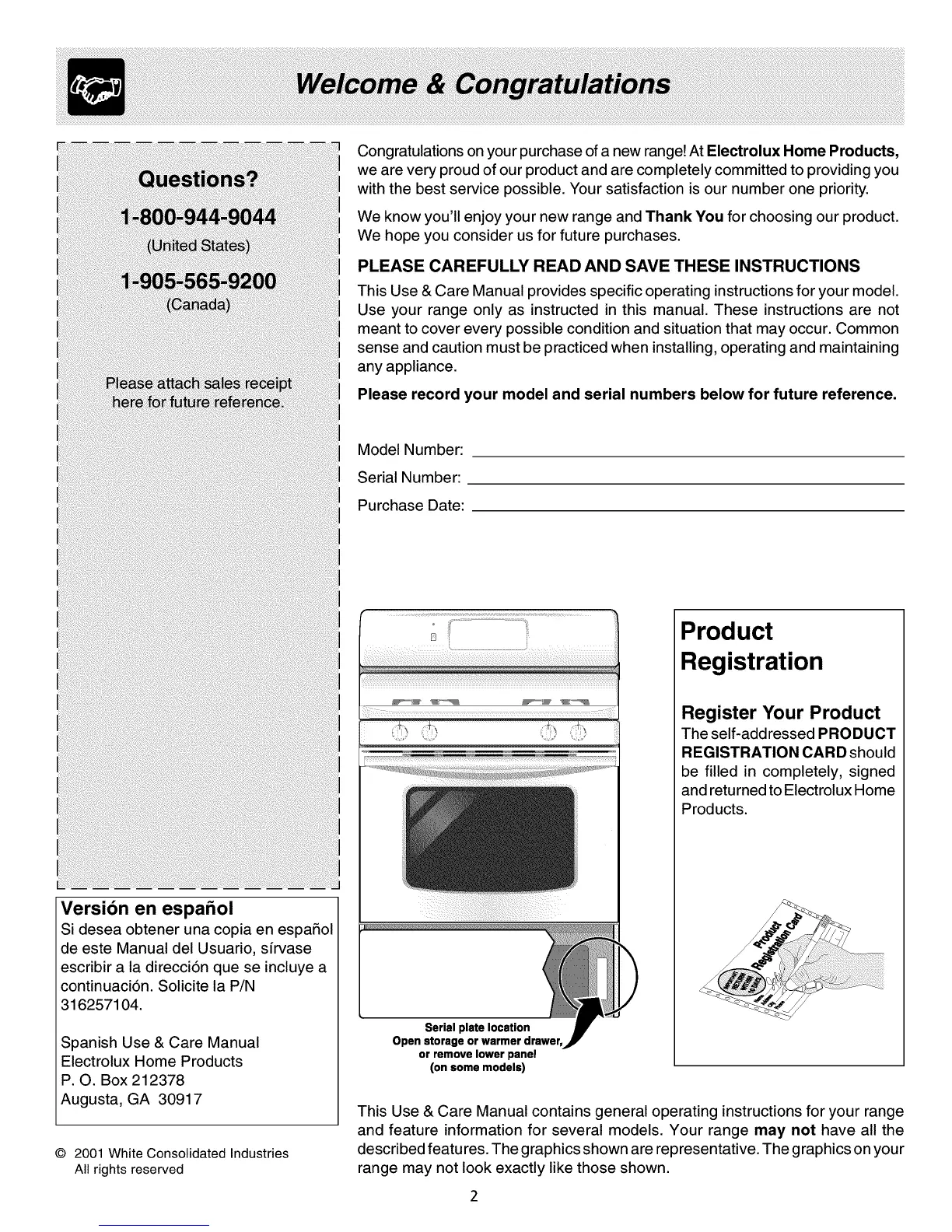 Congratulations on your purchase of a new range! At Electrolux Home Products,