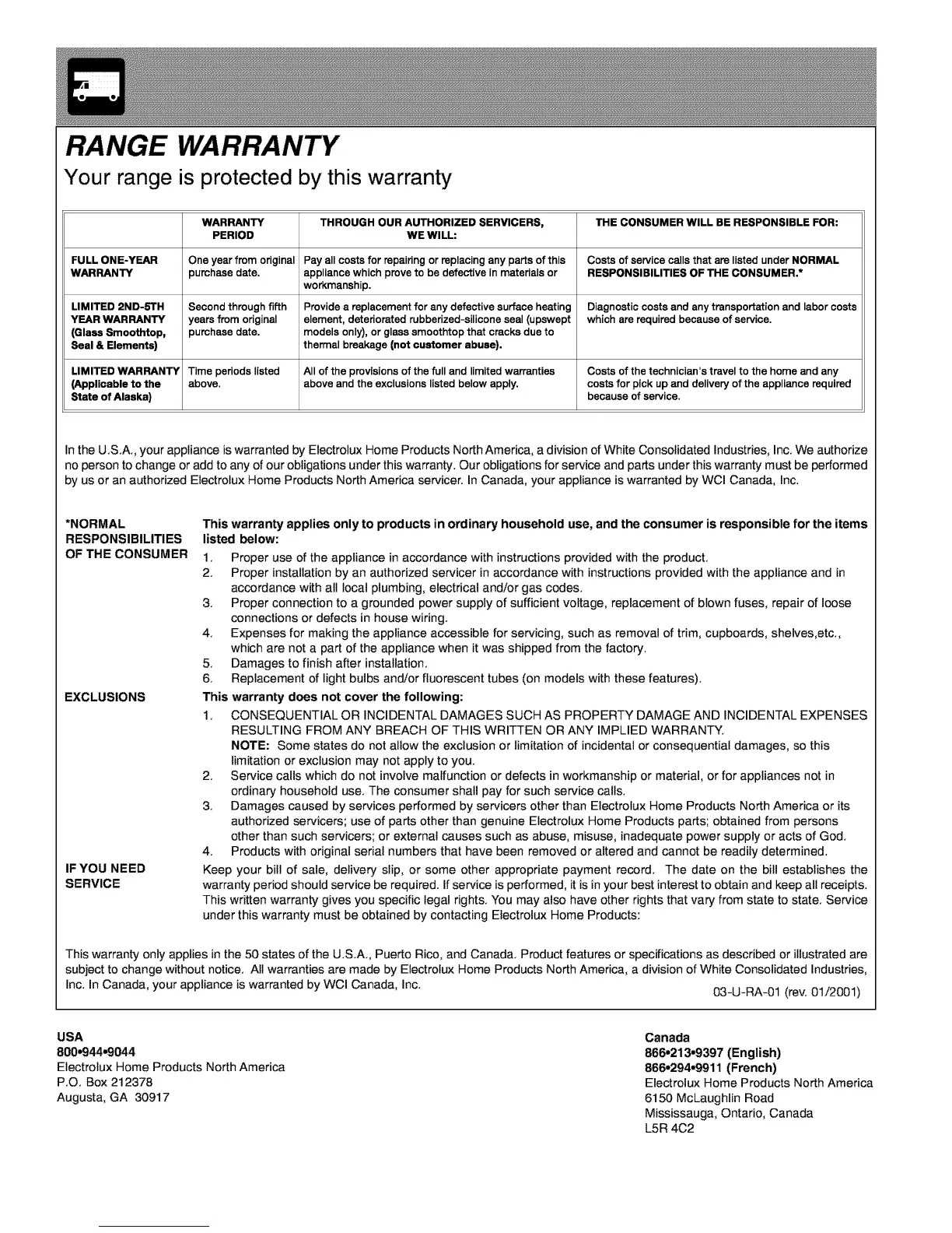 Inc. In Canada, your appliance is warranted by WCI Canada, Inc. 03-U-RA-01 (rev. 01/2001)
