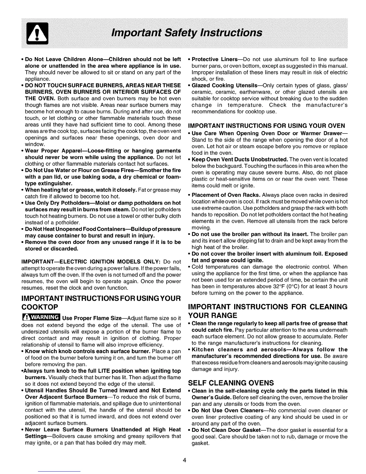 IMPORTANT--ELECTRIC IGNITION MODELS ONLY: Do not
