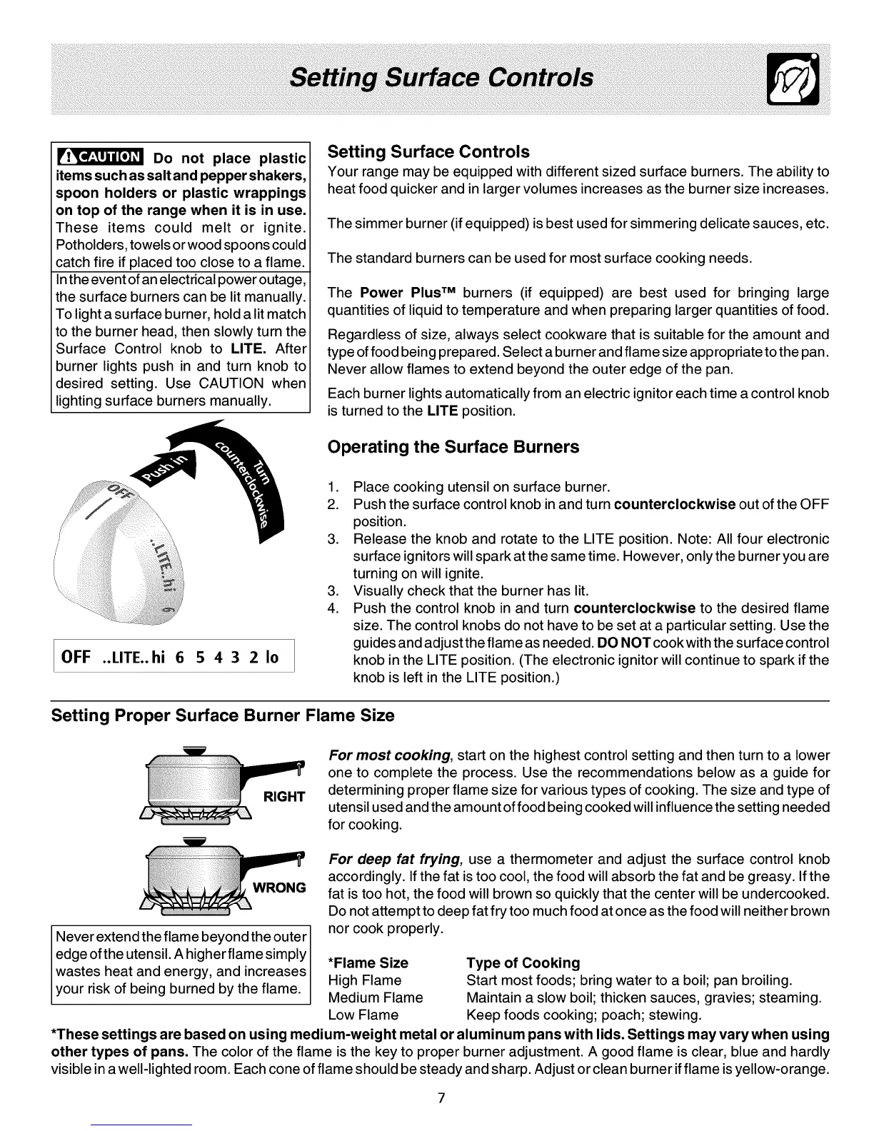 guides and adjust the flame as needed. DO NOT cook with the surface control