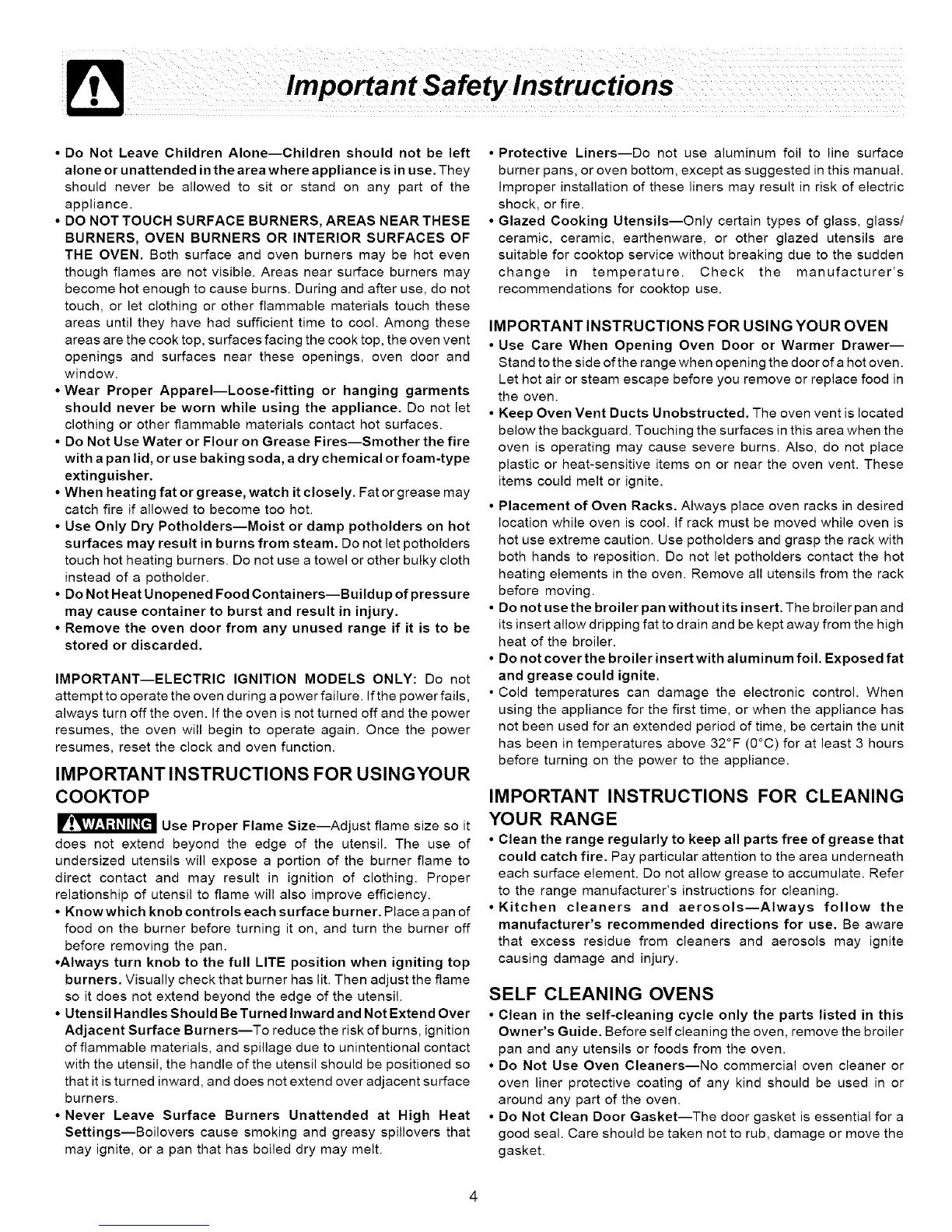IMPORTANT--ELECTRIC IGNITION MODELS ONLY: Do not
