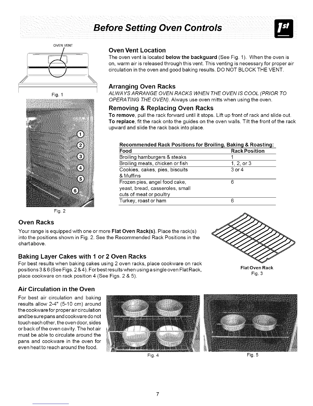 positions 3 & 6 (See Figs. 2 & 4). For best results when using a single oven Flat Rack,