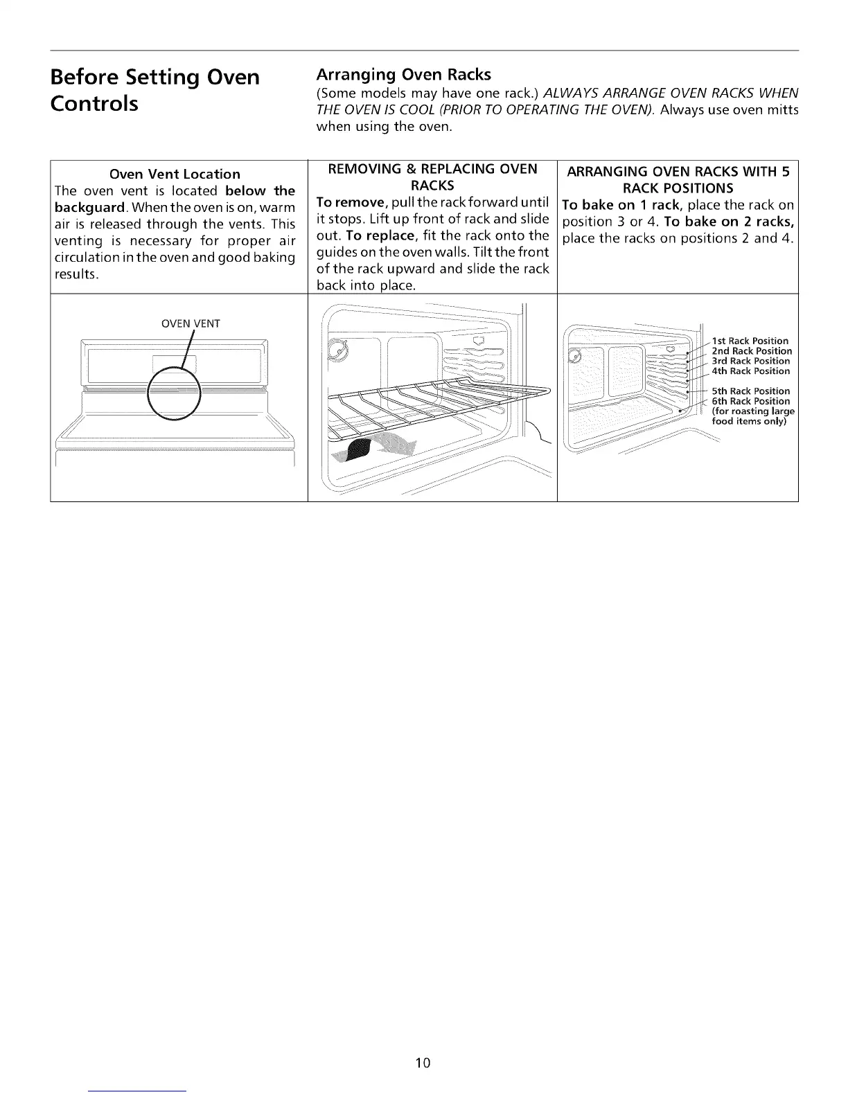 (Some models may have one rack.) ALWAYS ARRANGE OVEN RACKS WHEN