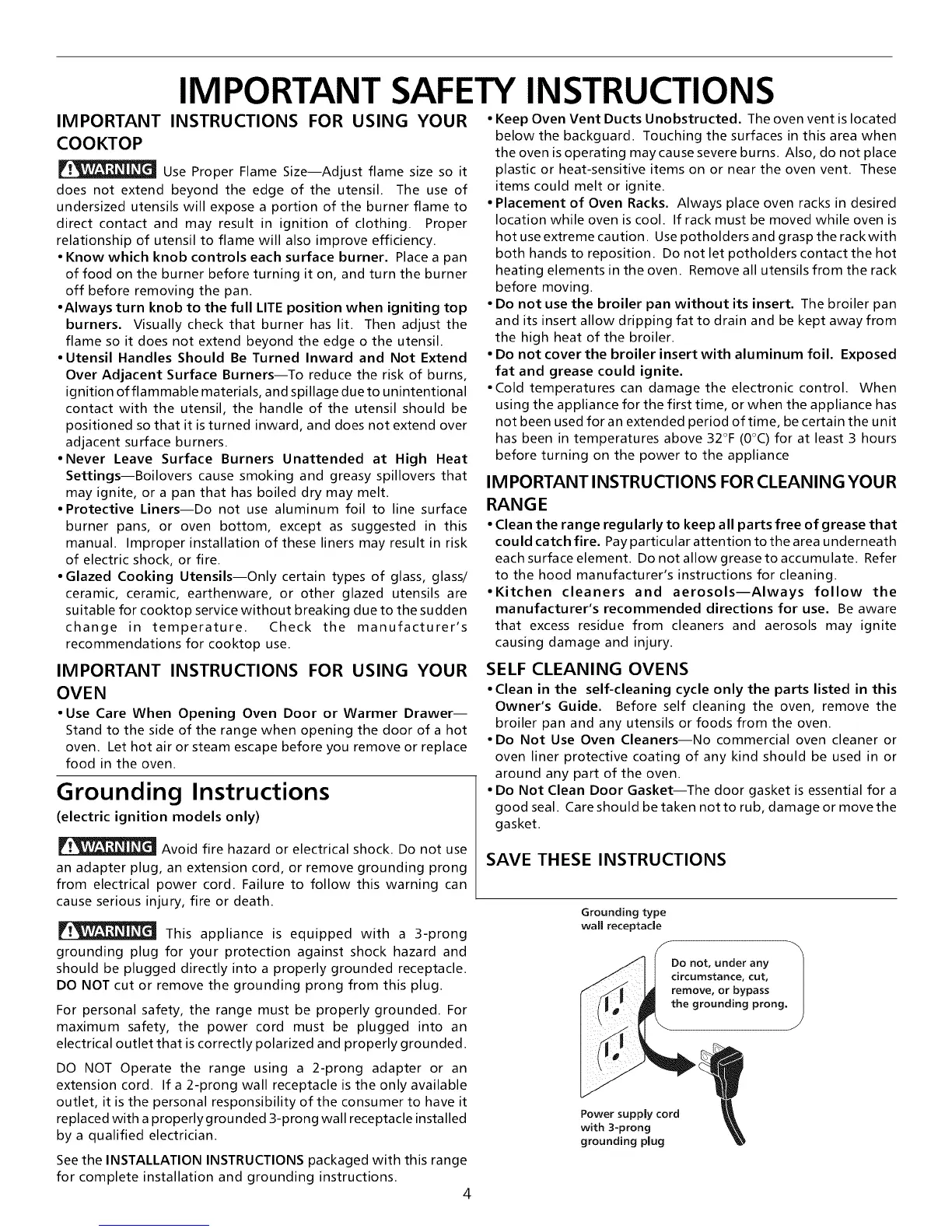 For personal safety, the range must be properly grounded. For