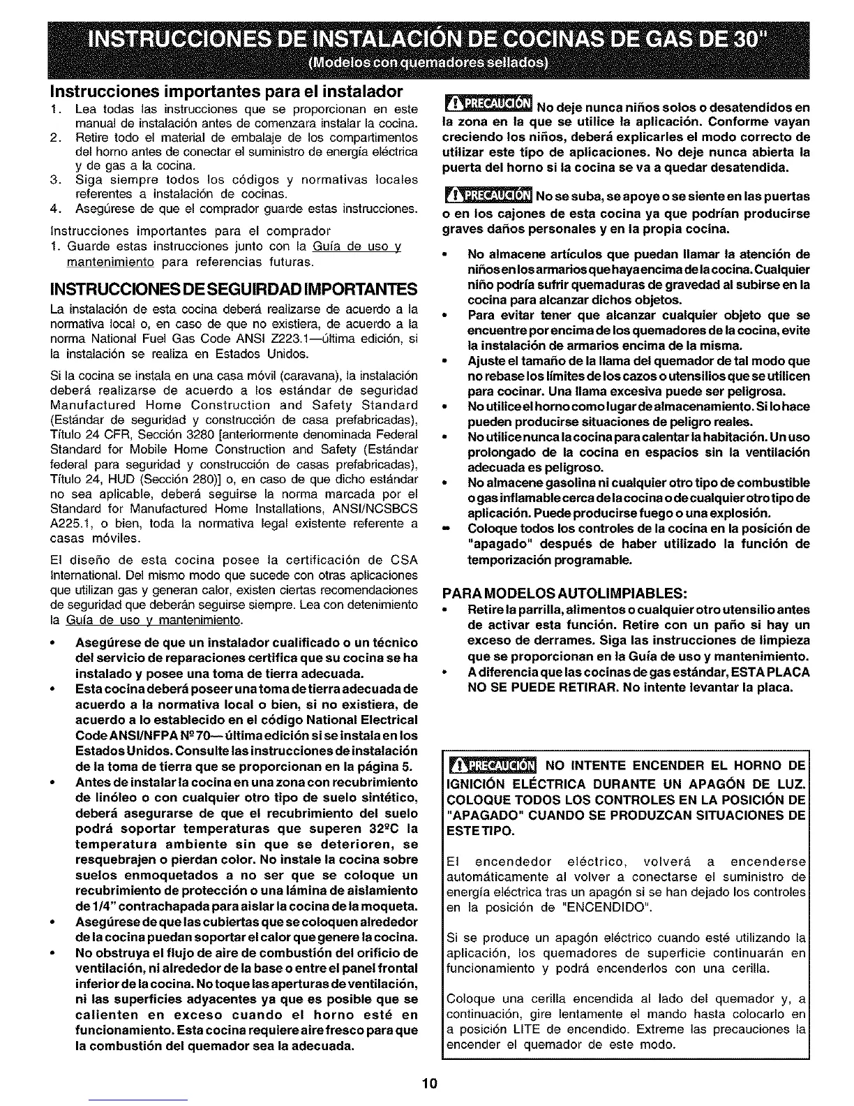 La instalaci6n de esta cocina deber_ realizarse de acuerdo a la