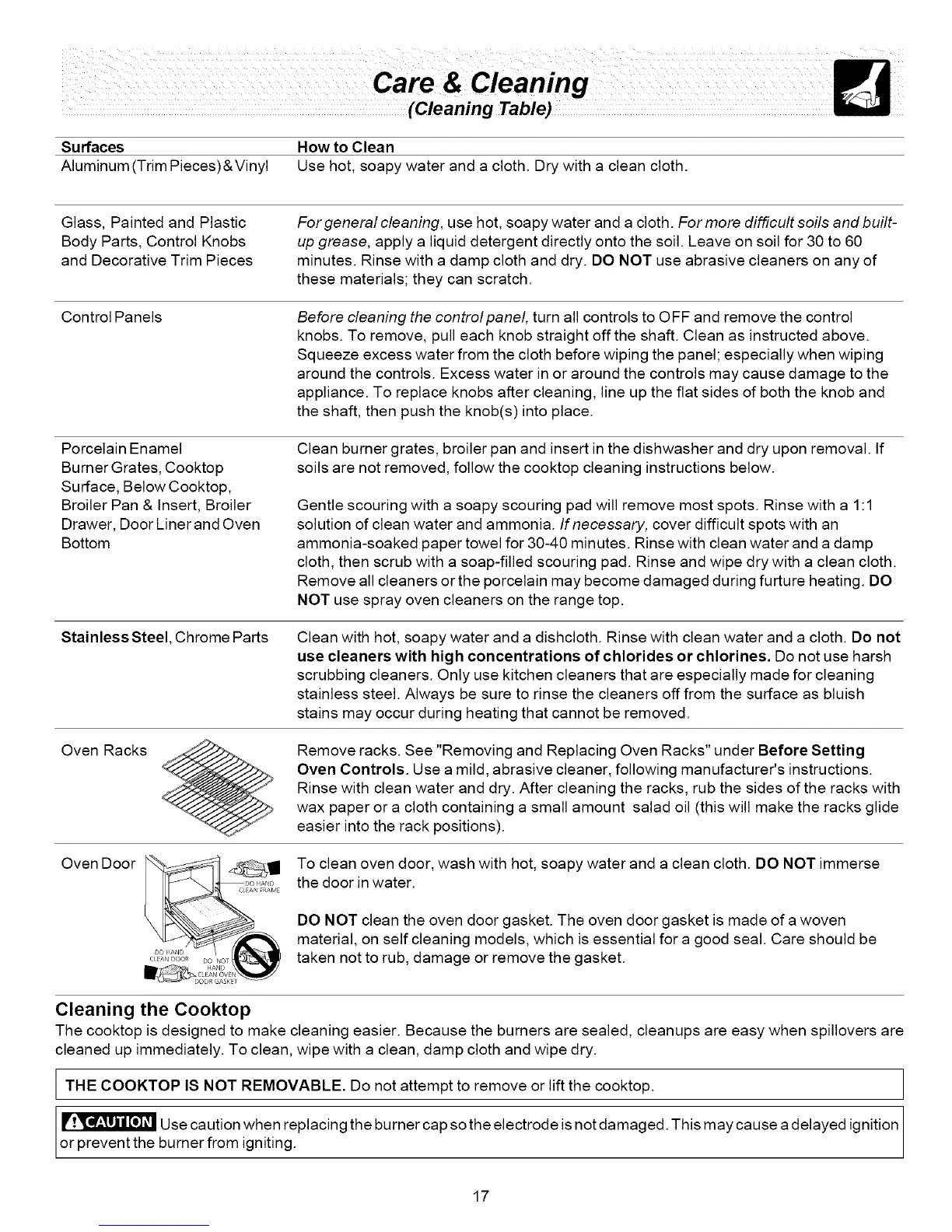 soils are not removed, follow the cooktop cleaning instructions below.