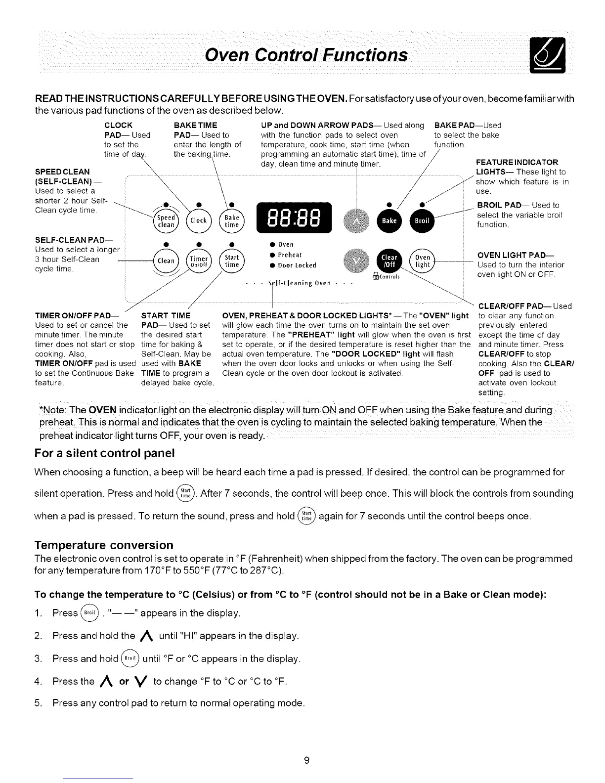 READ THE INSTRUCTIONS CAREFULLY BEFORE USING THE OVEN. Forsatisfactory use ofyour oven, become familiar with