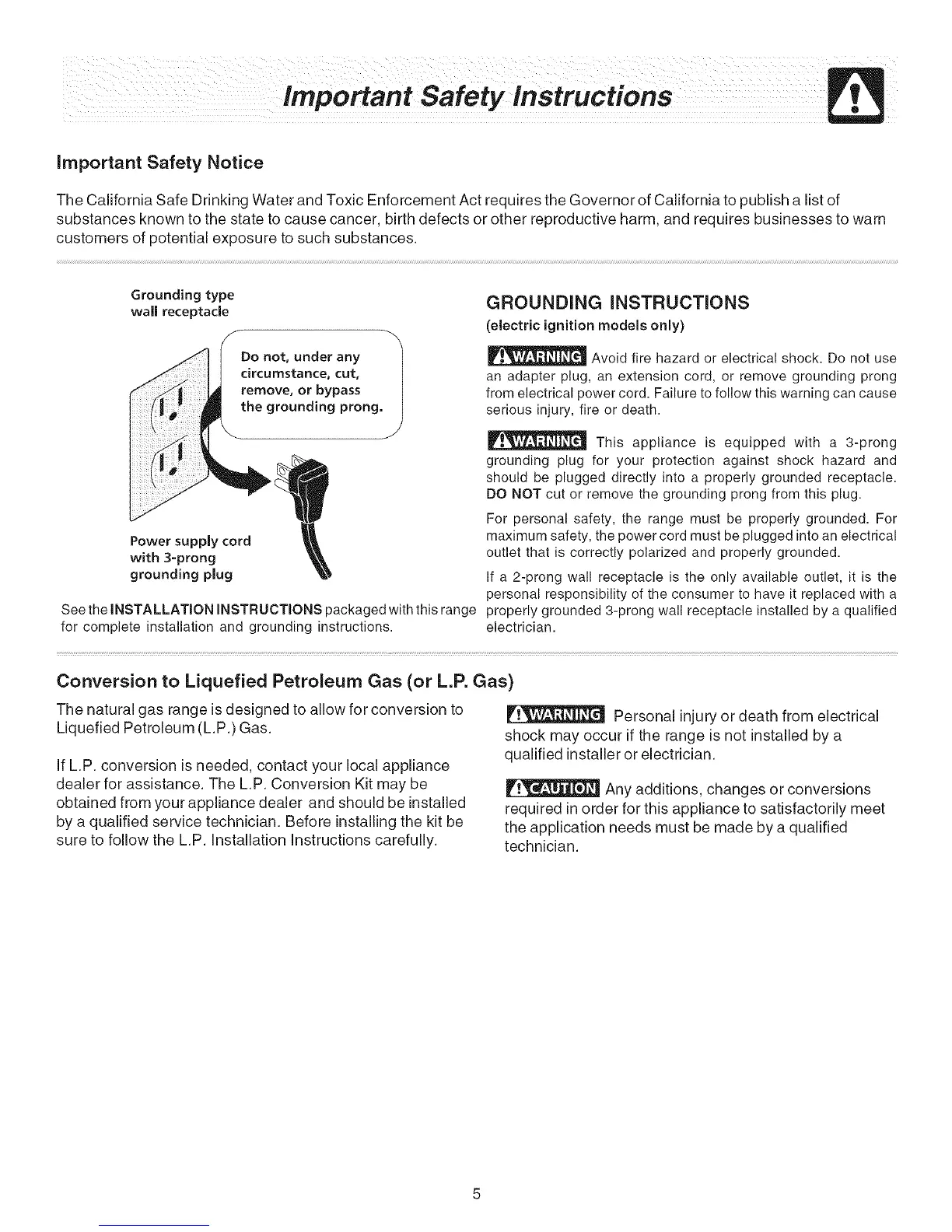 For personal safety, the range must be properly grounded. For