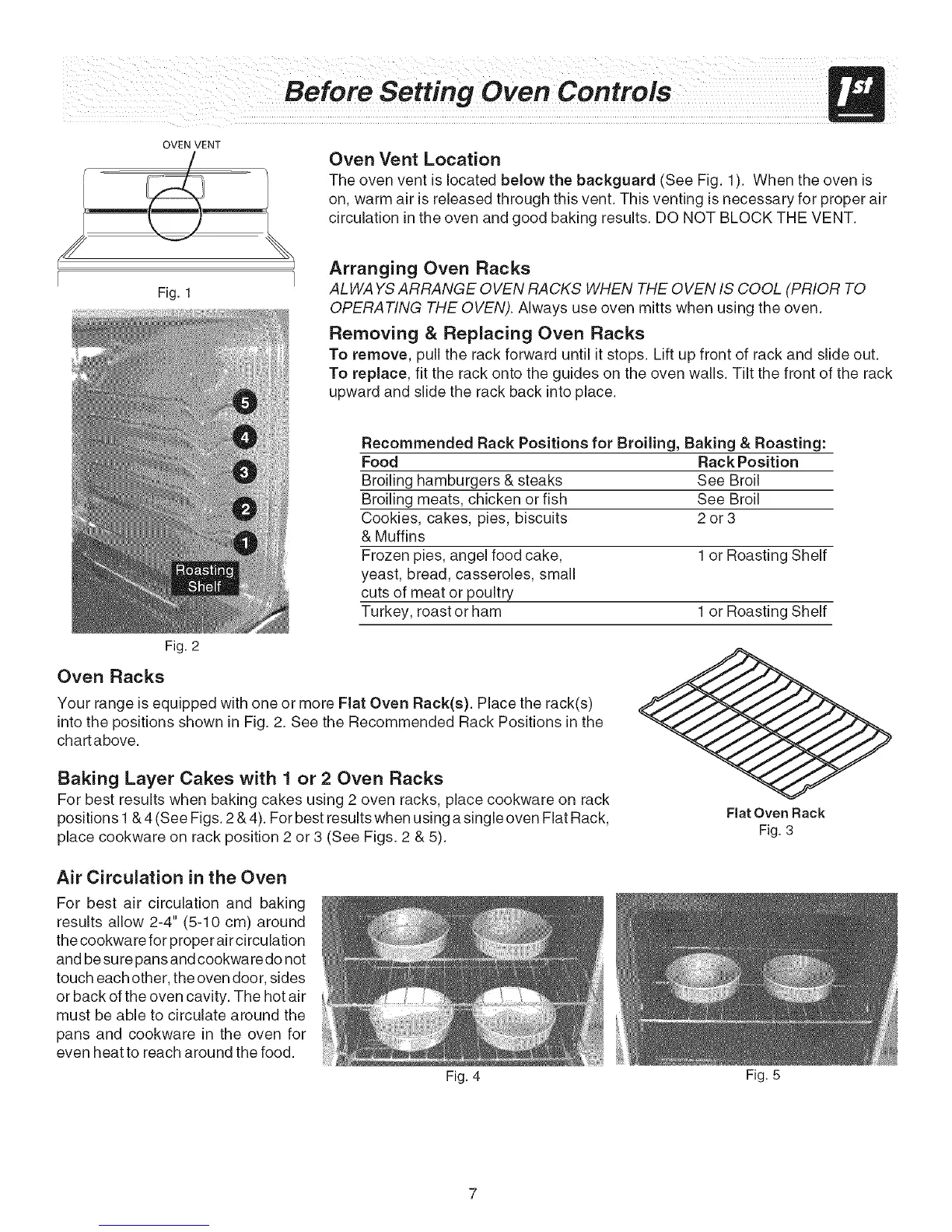 positions 1& 4 (See Figs. 2 & 4). For best results when using a single oven Flat Rack,