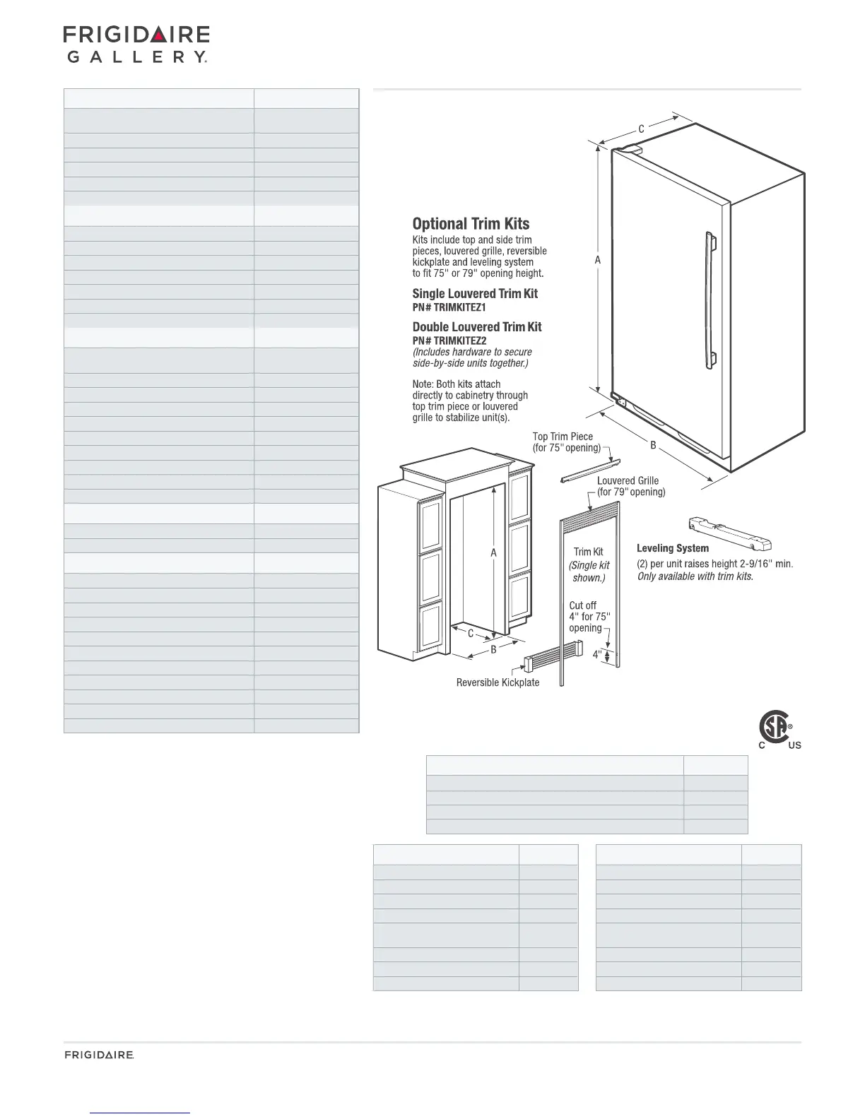 Refer to Product Installation Guide for detailed installation instructions on the web at frigidaire.com.