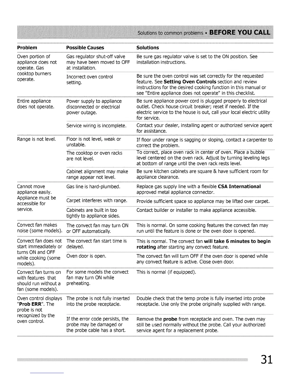 Convect fan turns on For some models the convect This is normal (if equipped).