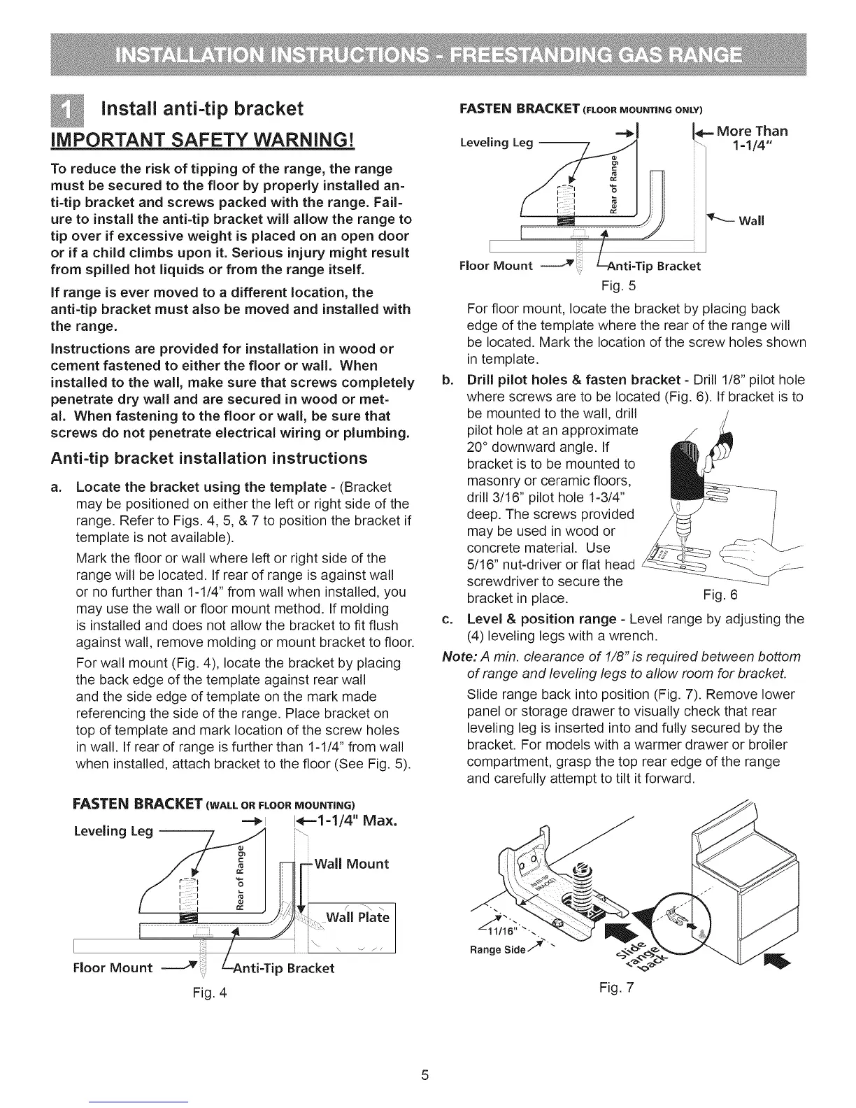 range. Refer to Figs. 4, 5, & 7 to position the bracket if