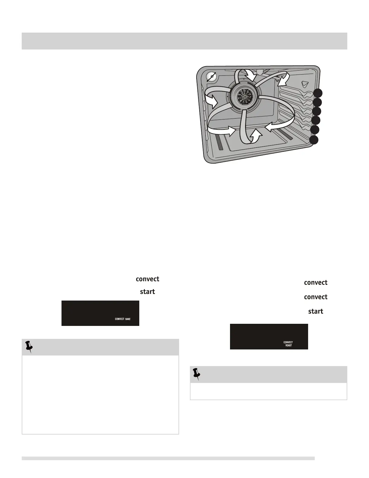 • The convect fan will not start until 6 minutes after