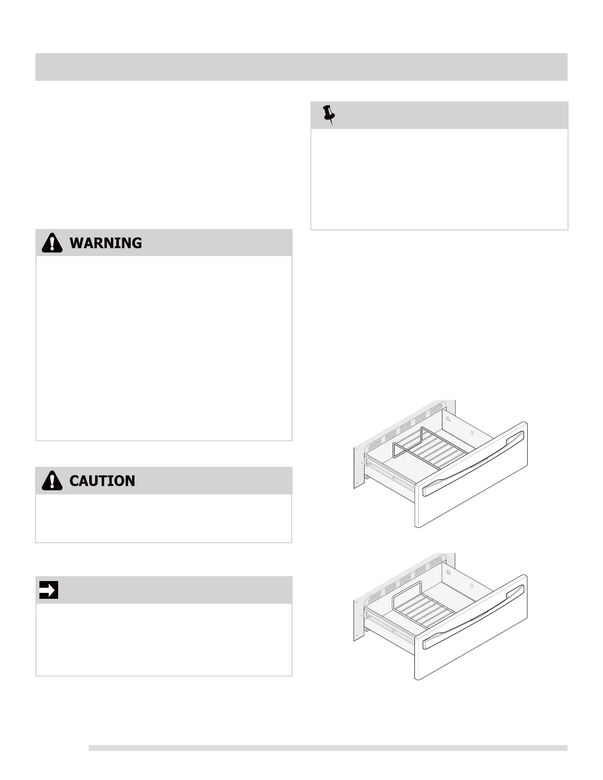The Keep Warm Drawer rack may be positioned in the