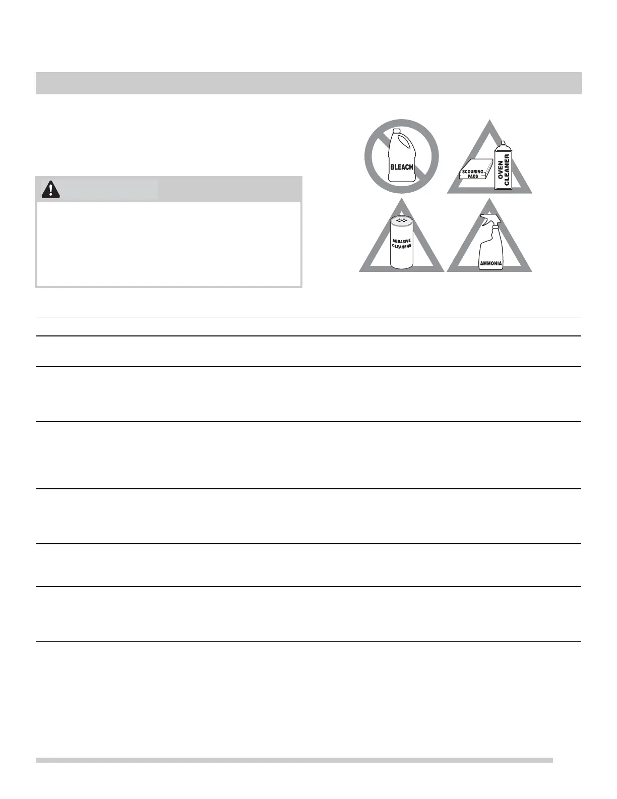 cleaners containing abrasives, chlorides, chlorine, or ammonia.