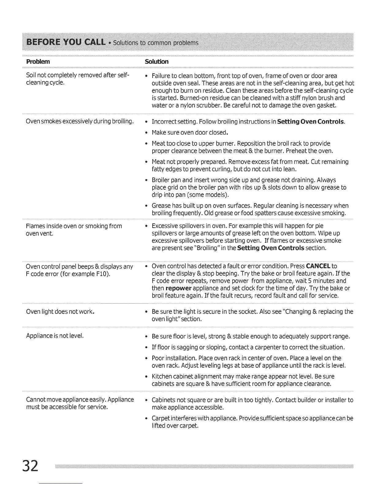 Oven smokes excessively during broiling, o Incorrect setting. Follow broiling instructions in Setting Oven Controls.