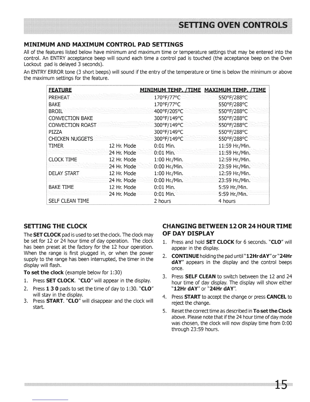 All of the features listed below have minimum and maximum time or temperature settings that may be entered into the