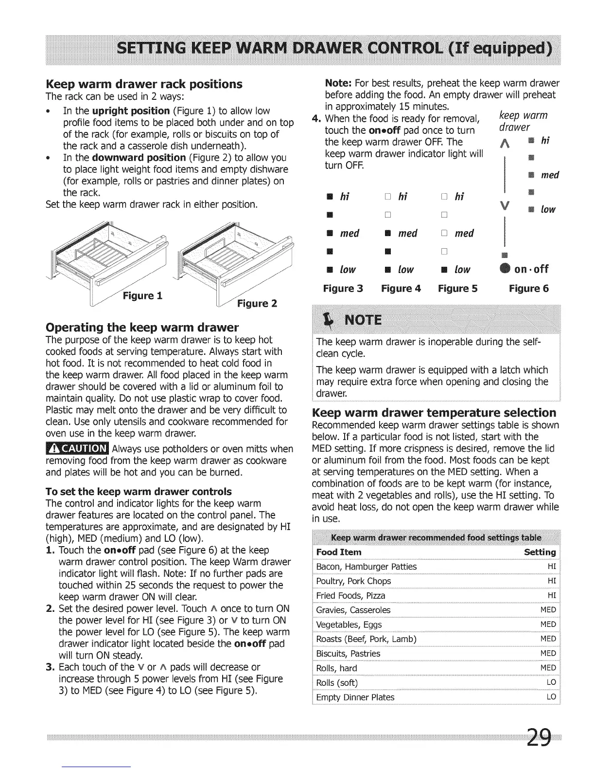 Note" For best results, preheat the keep warm drawer