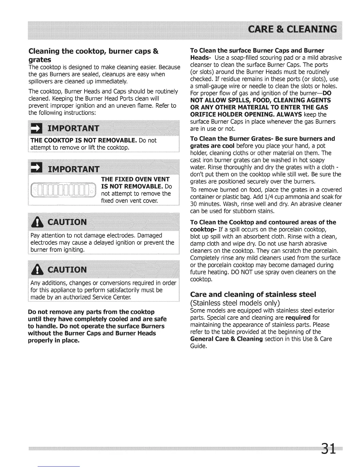 To Clean the Burner Grates= Be sure burners and