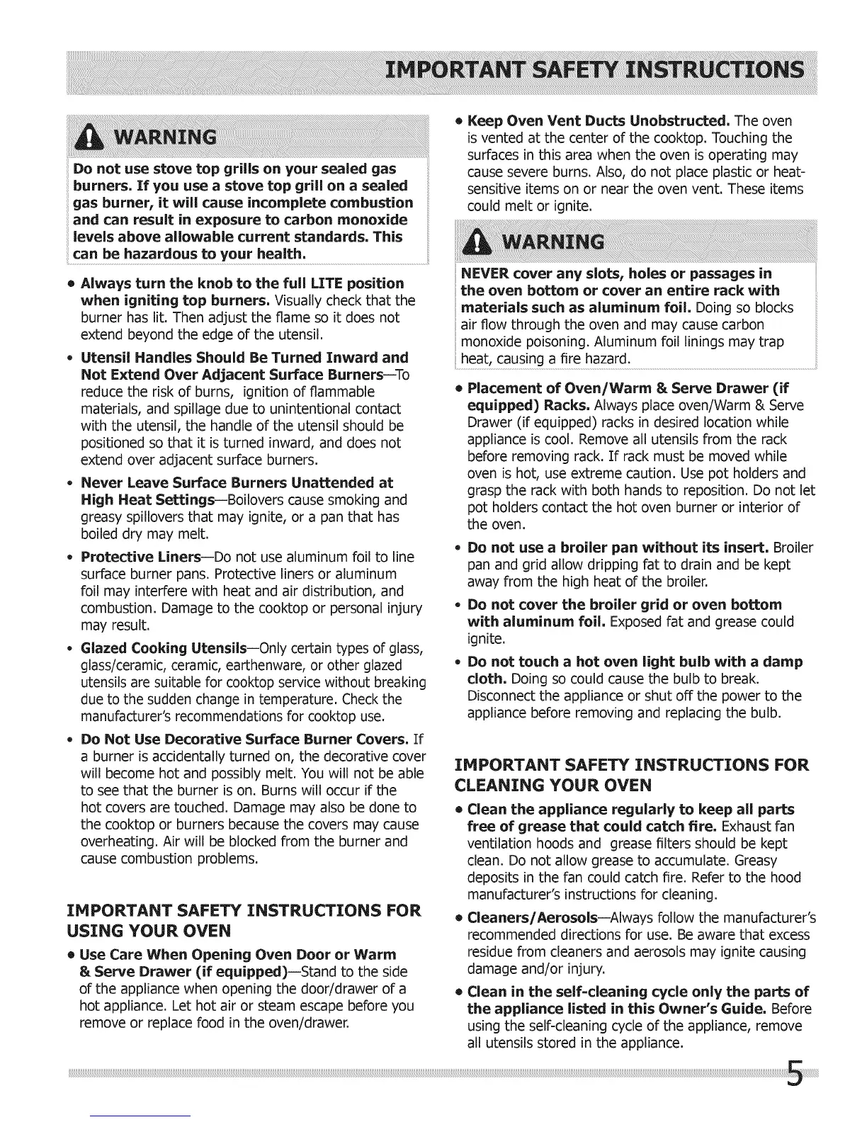 • Keep Oven Vent Ducts Unobstructed, The oven