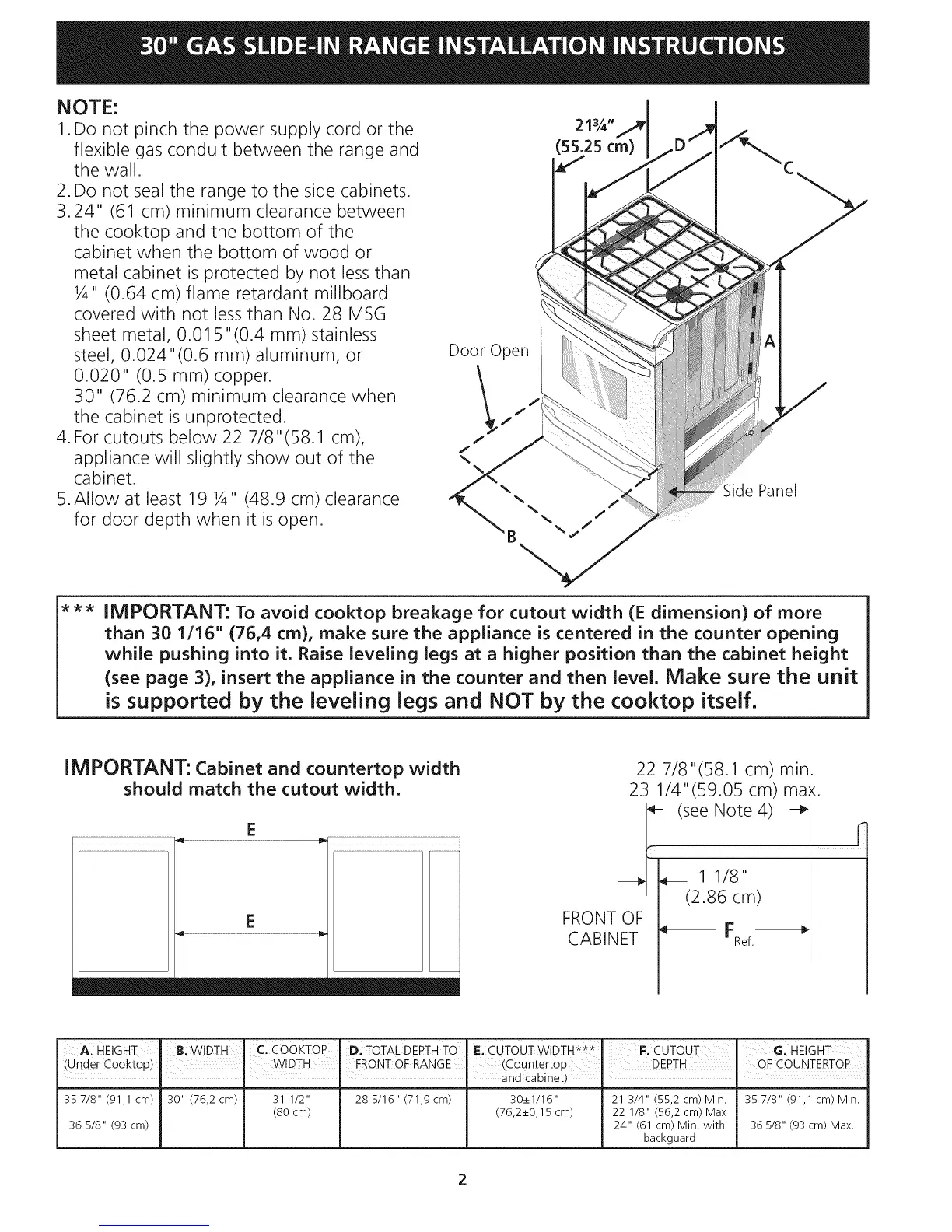 *** IMPORTANT: To avoid cooktop breakage for cutout width (E dimension) of more