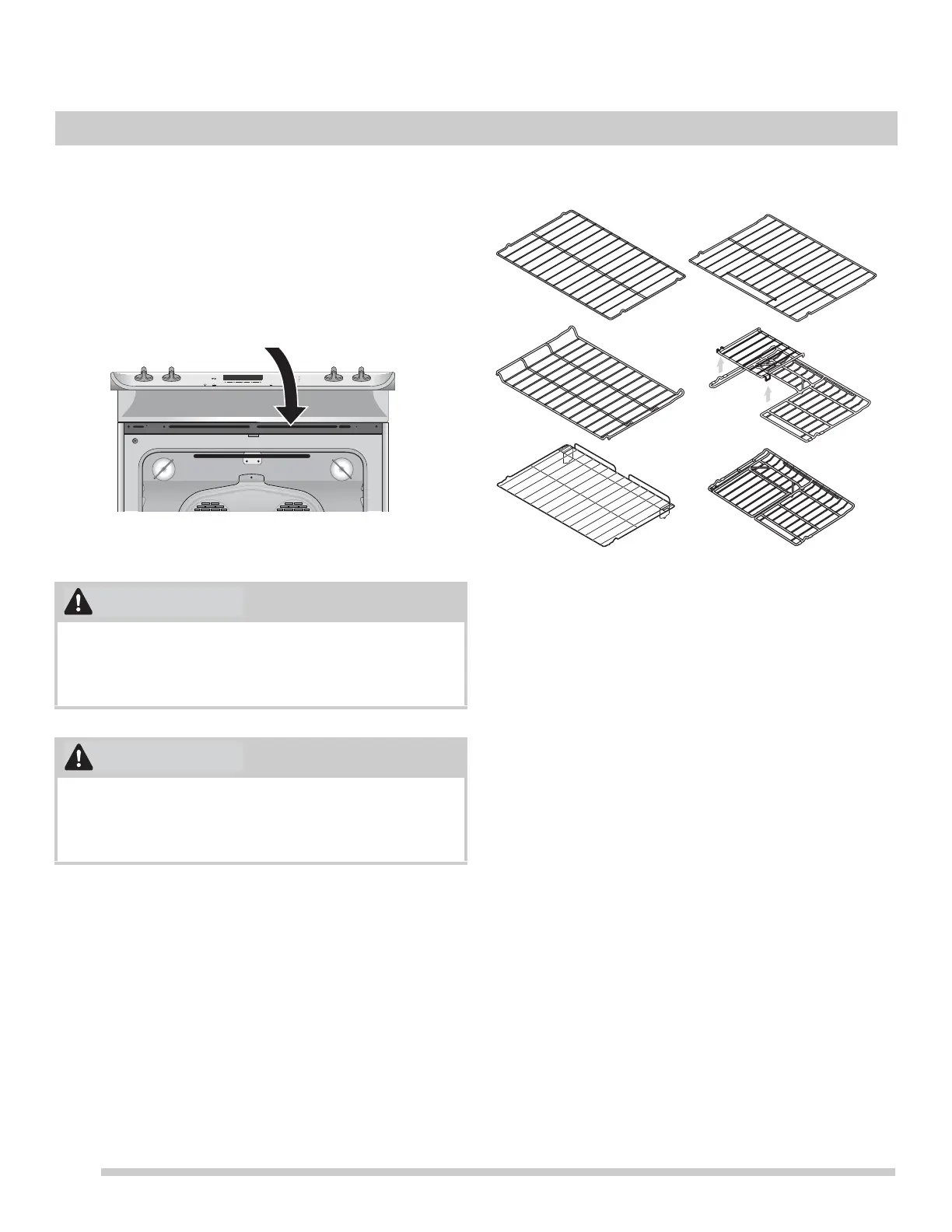 racks, and cooktop will become very hot which can cause