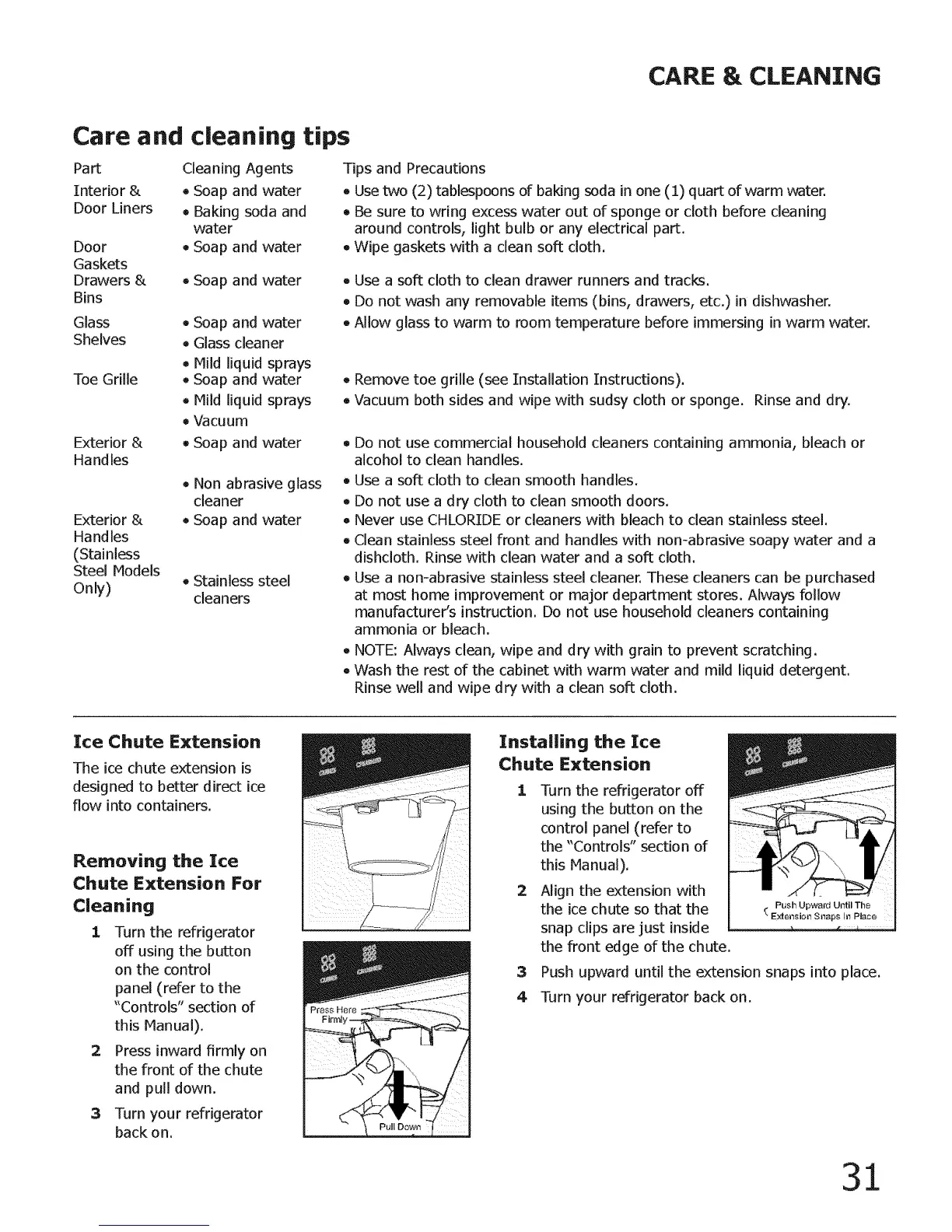 • Never use CHLORIDE or cleaners with bleach to clean stainless steel.