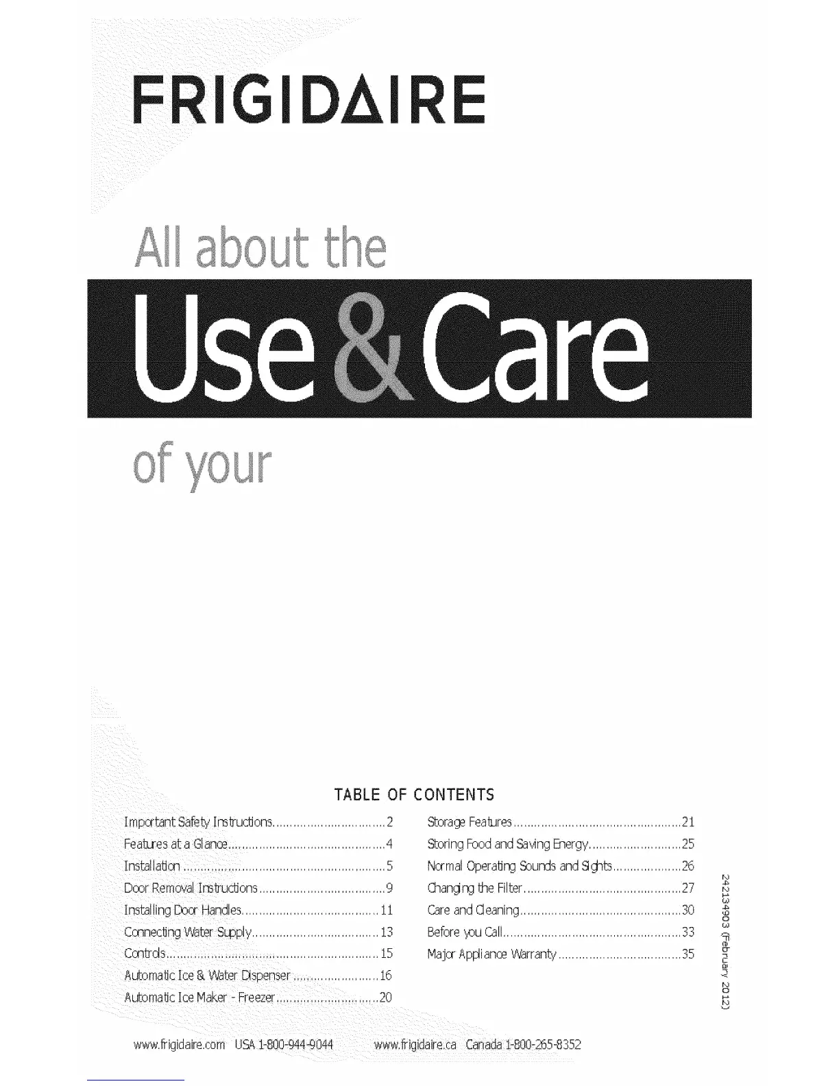 www.ffigidaire.com USA1-800-g44@044 www.fiigidaire.ca Canadal-800-265-8352