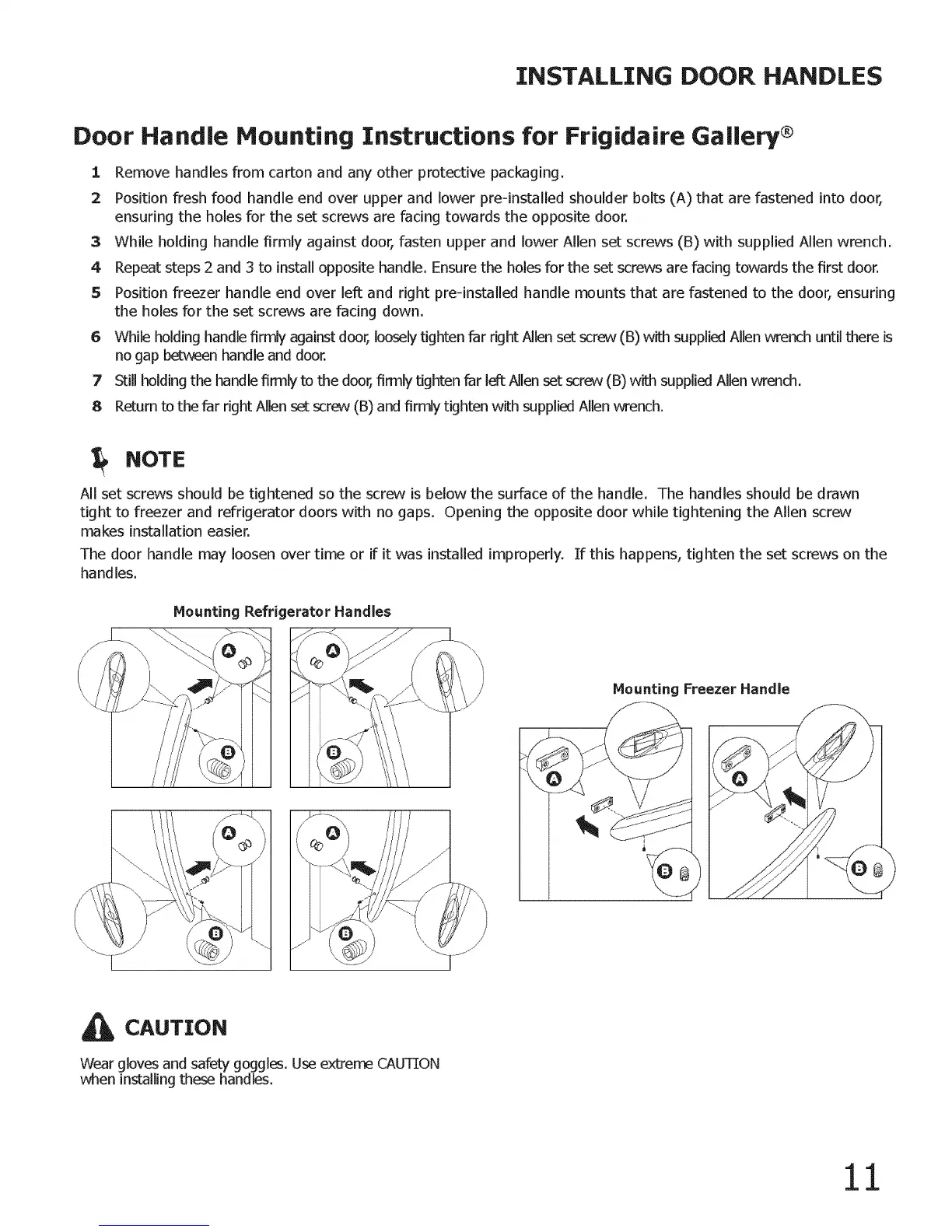 Door Handle Mounting Instructions for Frigidaire Gallery ®