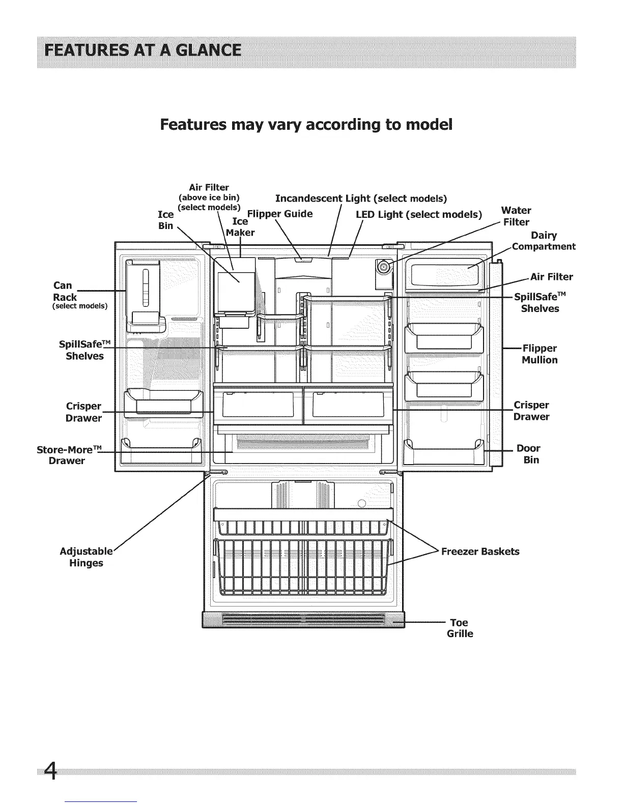 Frigidaire FGHB2844LF2 - Features at a Glance; Refrigerator Compartment Components