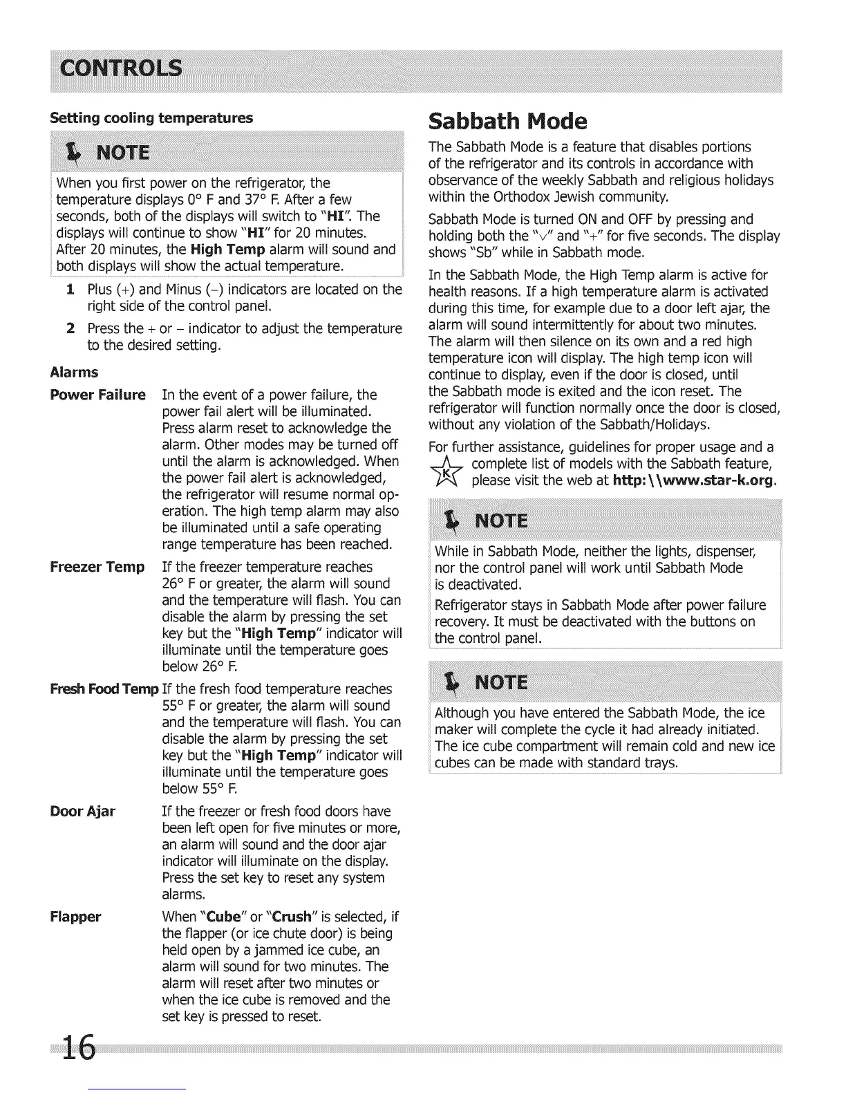 In the Sabbath Mode, the High Temp alarm is active for