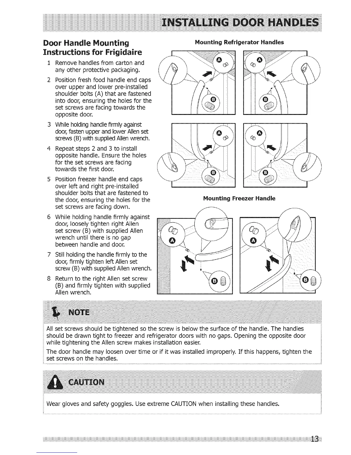 Wear gloves and safety goggles. Use extreme CAUTION when installing these handles.