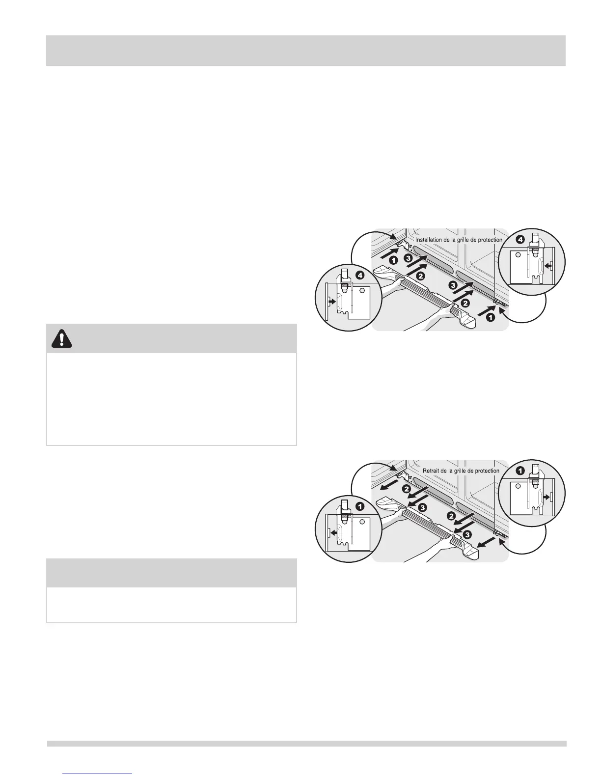 2 Tout en appuyant fermement la grille de protection