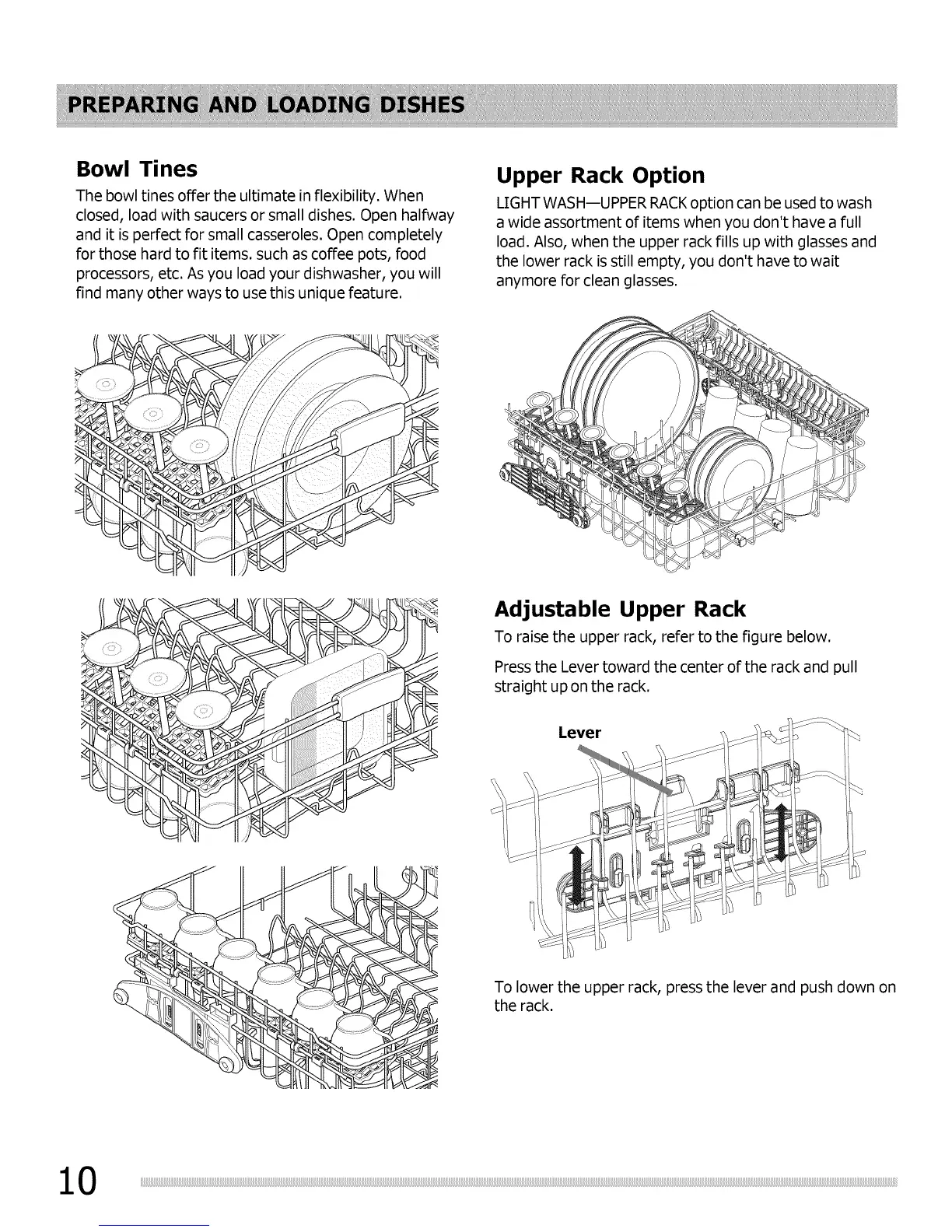 Tolowerthe upperrack, presstheleverand push down on