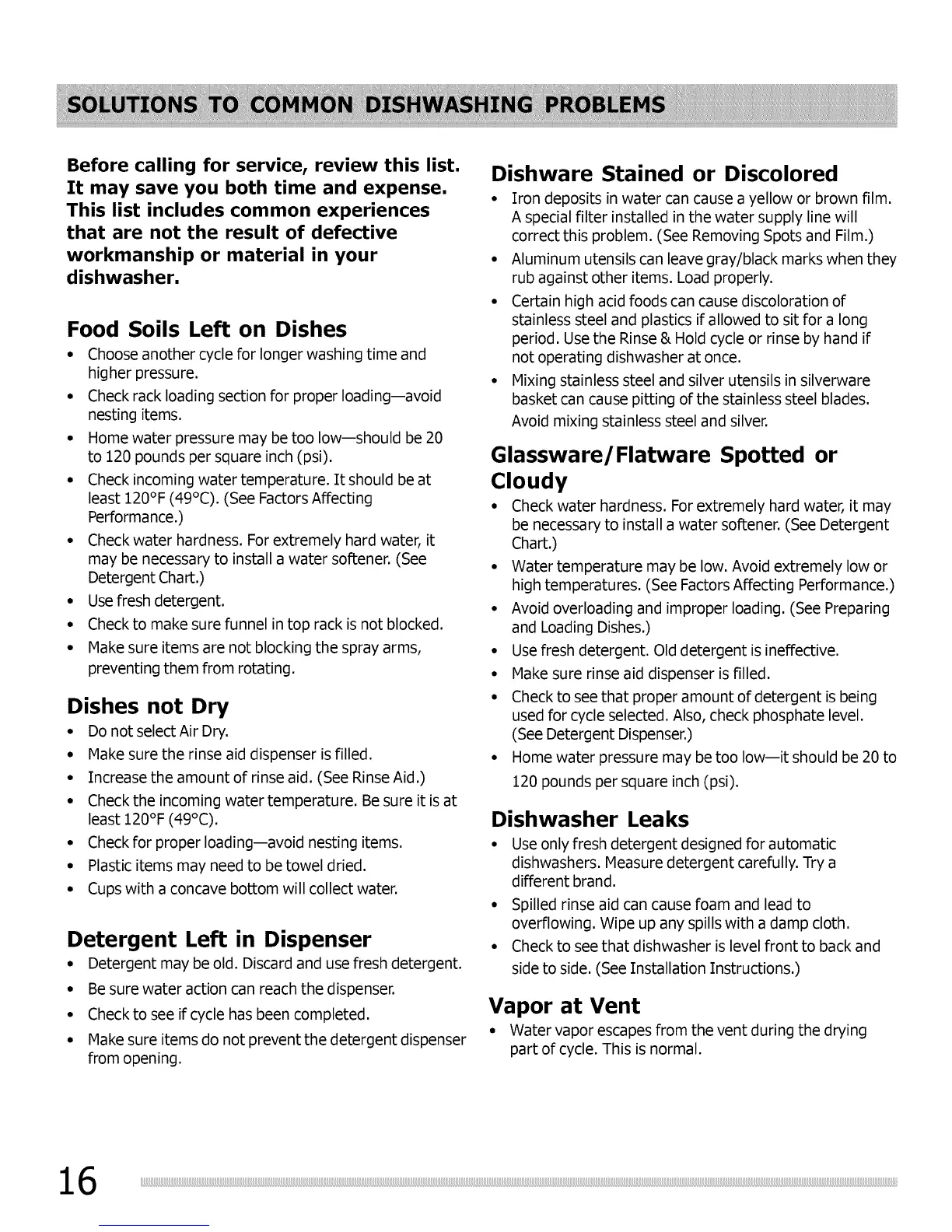 • Increase the amount of rinse aid. (See Rinse Aid.)