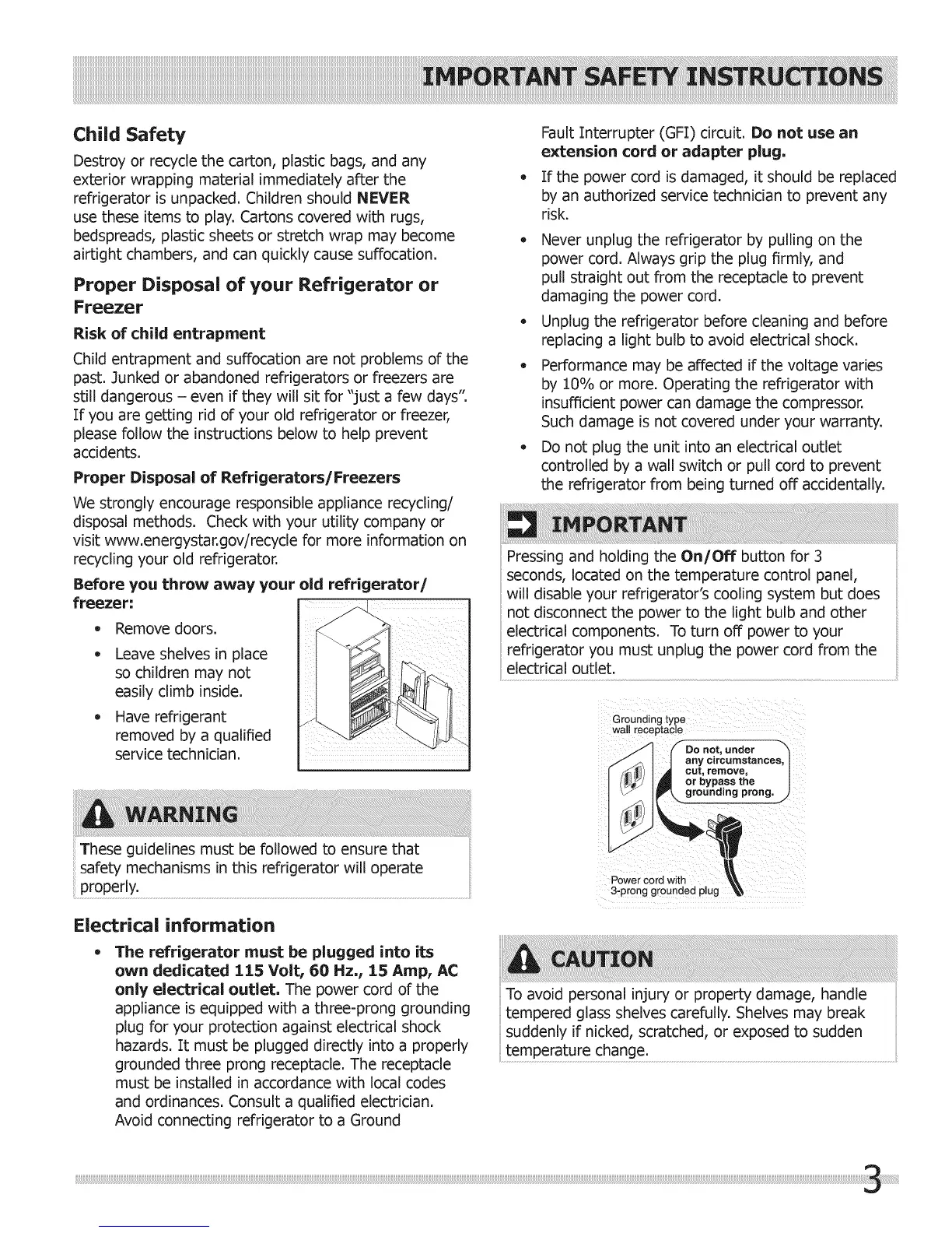 refrigerator is unpacked. Children should NEVER