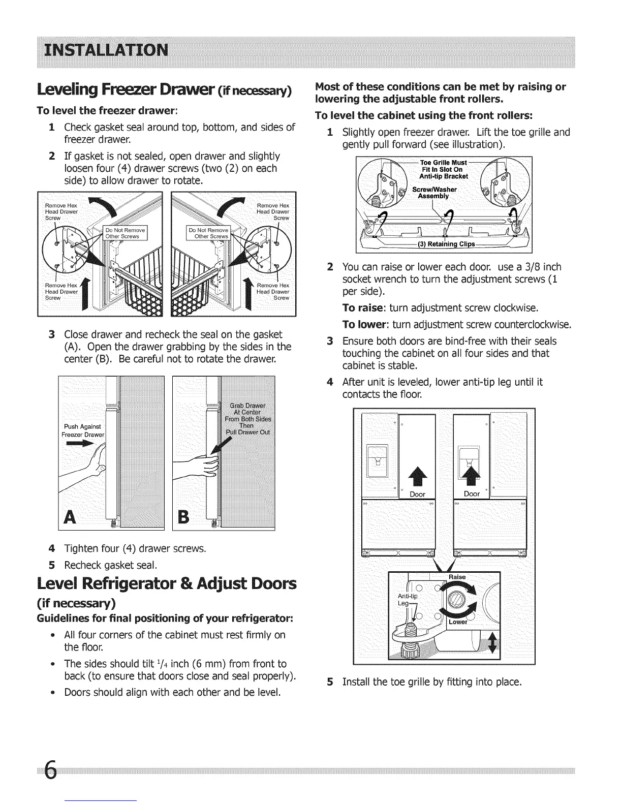 Level Refrigerator & Adjust Doors