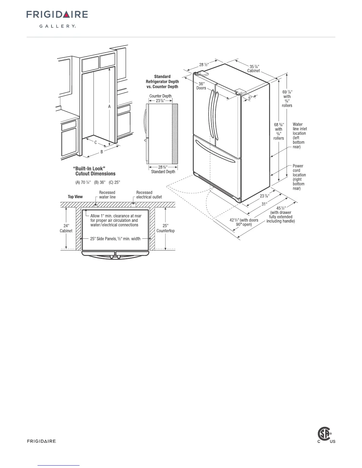 Minimum opening of 70-1/4" H x 36" W x 25" D required to allow for