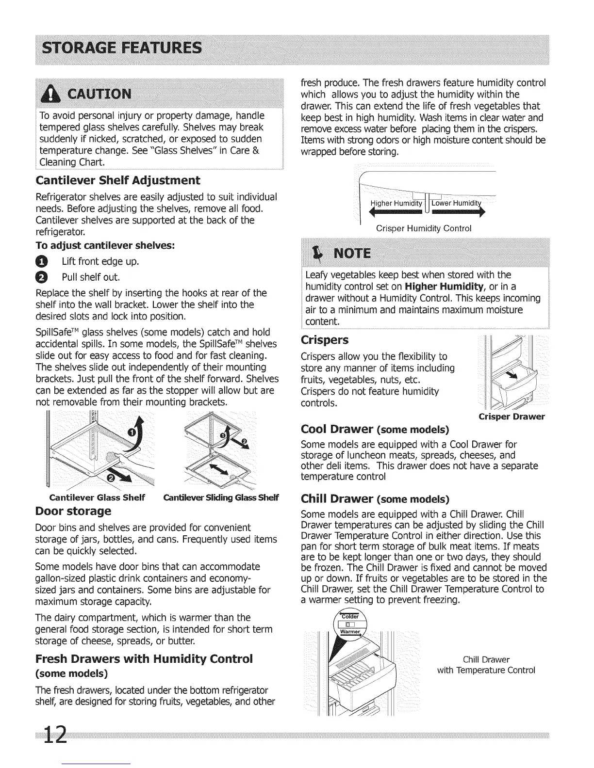 be frozen. The Chill Drawer is fixed and cannot be moved