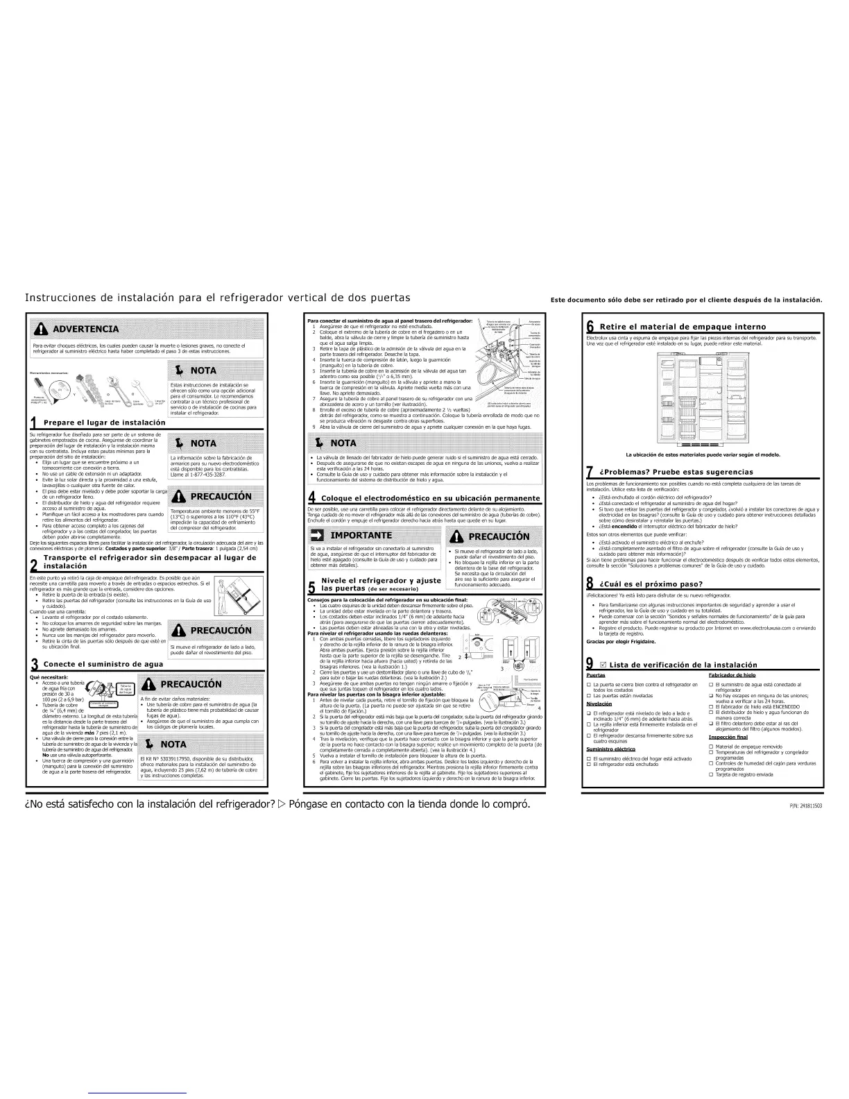 Instrucciones de instalaci6n para el refrigerador vertical de dos puertas Este documento s61o debe ser retirado por el cliente despu_s de la instalaci6n.