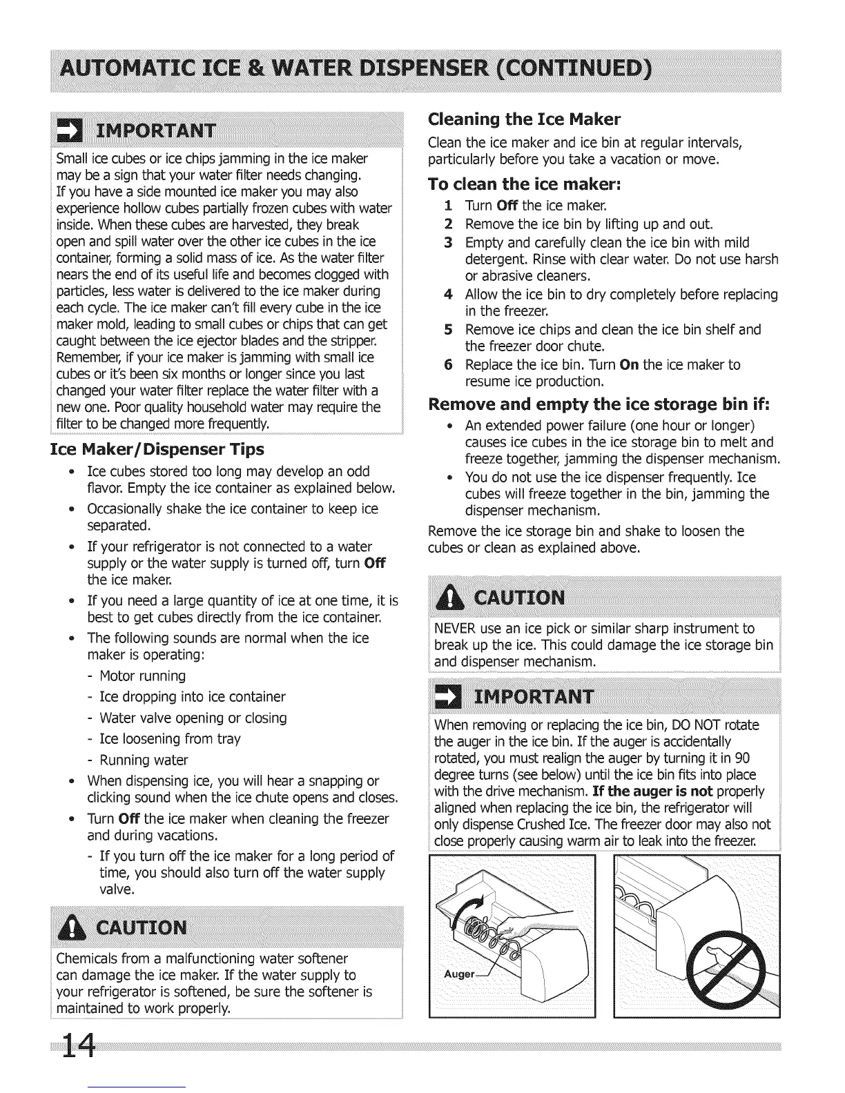 the auger in the ice bin. If the auger is accidentally