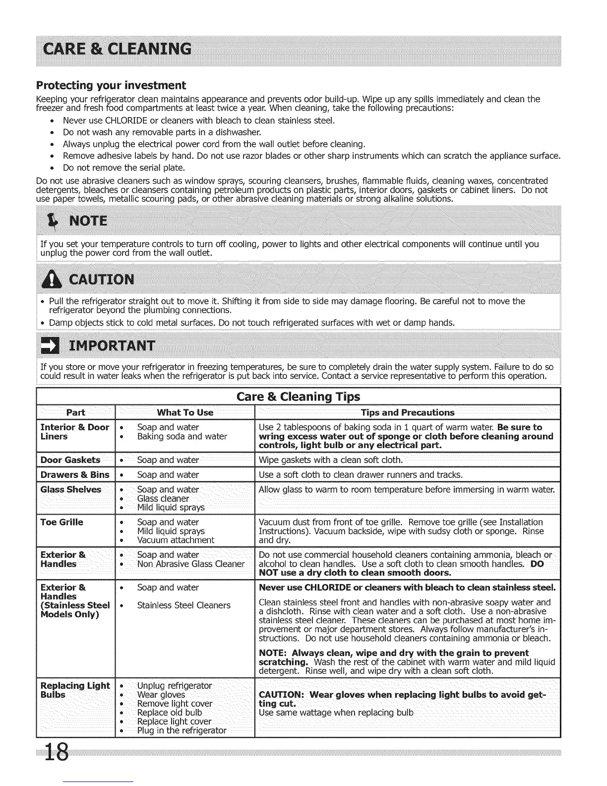 freezer and fresh food compartments at least twice a year. When cleaning, take the following precautions: